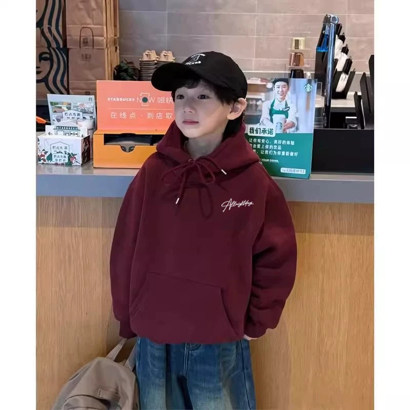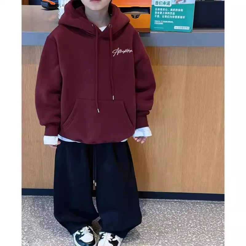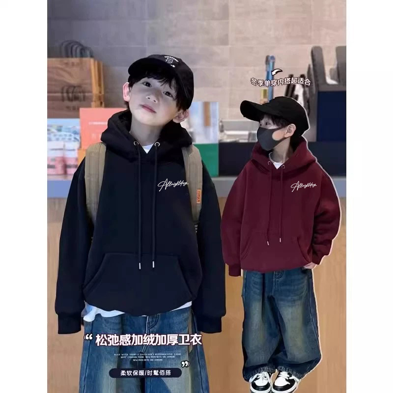 男女童加绒卫衣帅气洋气新款儿童秋冬装加厚连帽衫中大童上衣外套