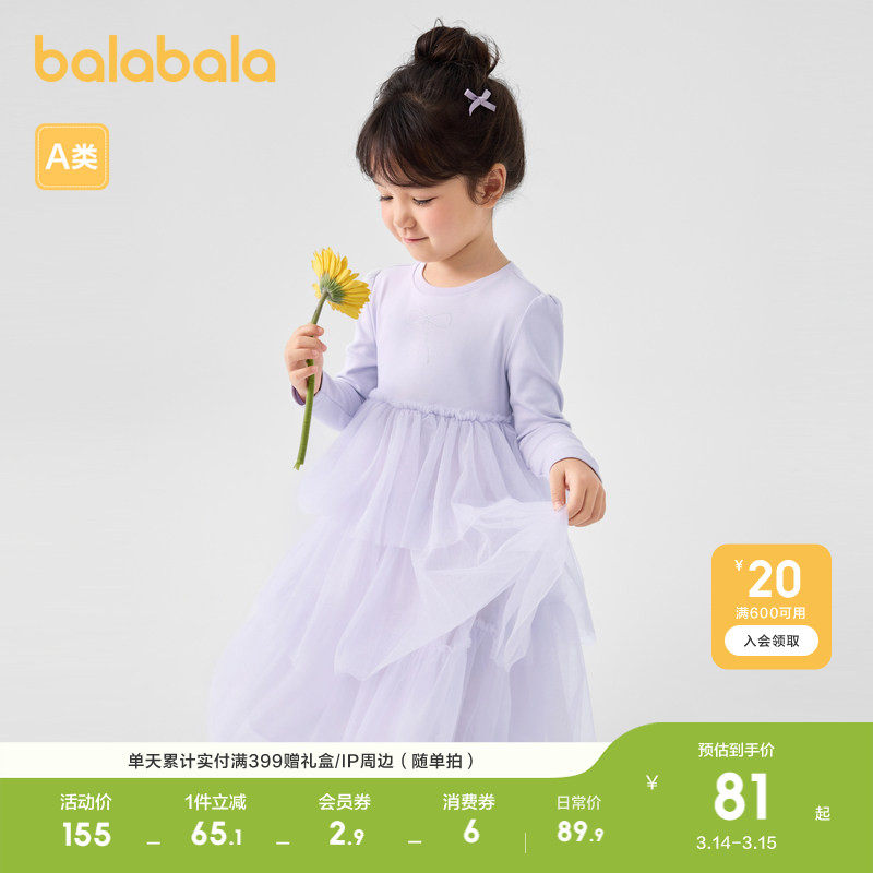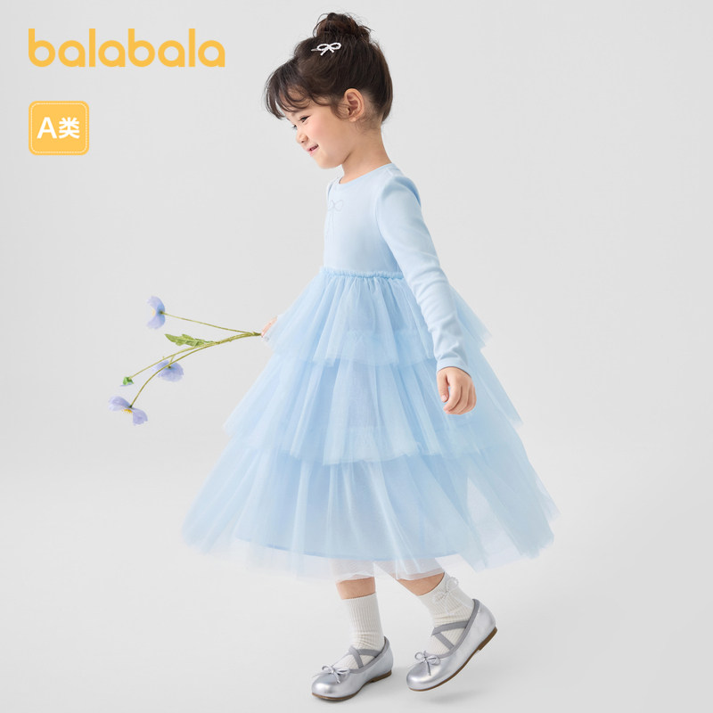 巴拉巴拉童装女小童连衣裙春秋宝宝长袖网纱裙子甜美儿童可爱公主
