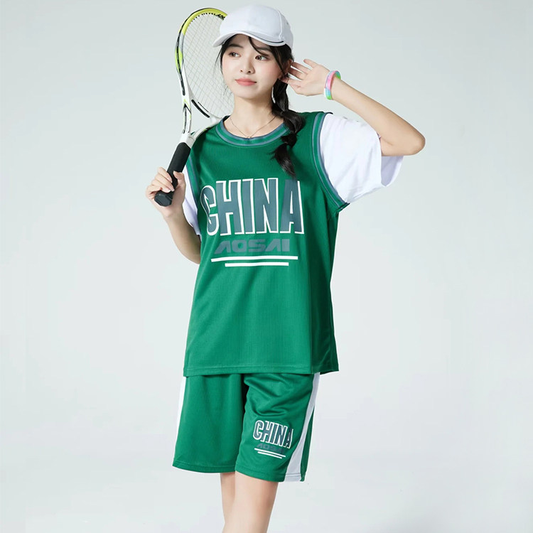 篮球服女套装定制运动比赛球衣训练队服中大童成人假两件有袖班服