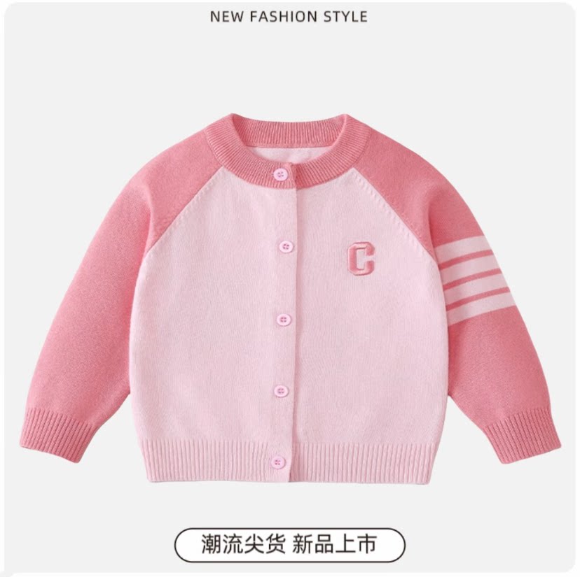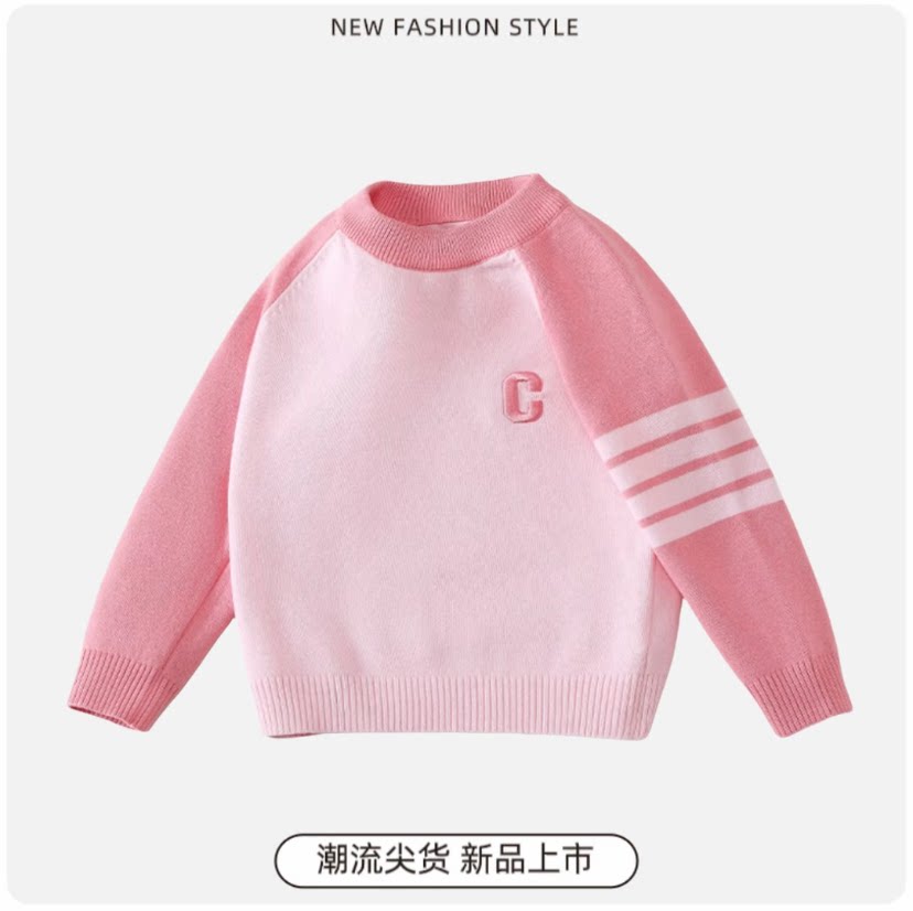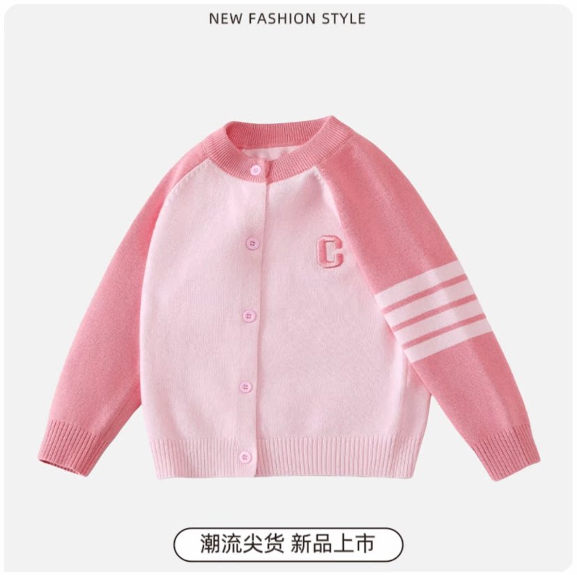 纯棉女童针织衫外套套头春秋儿童毛衣开衫时尚拼色内搭外穿毛线衣