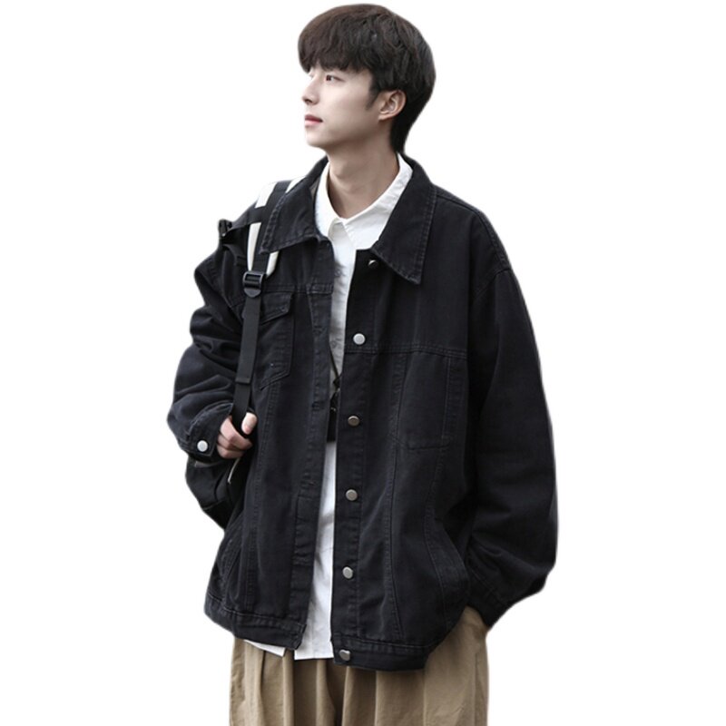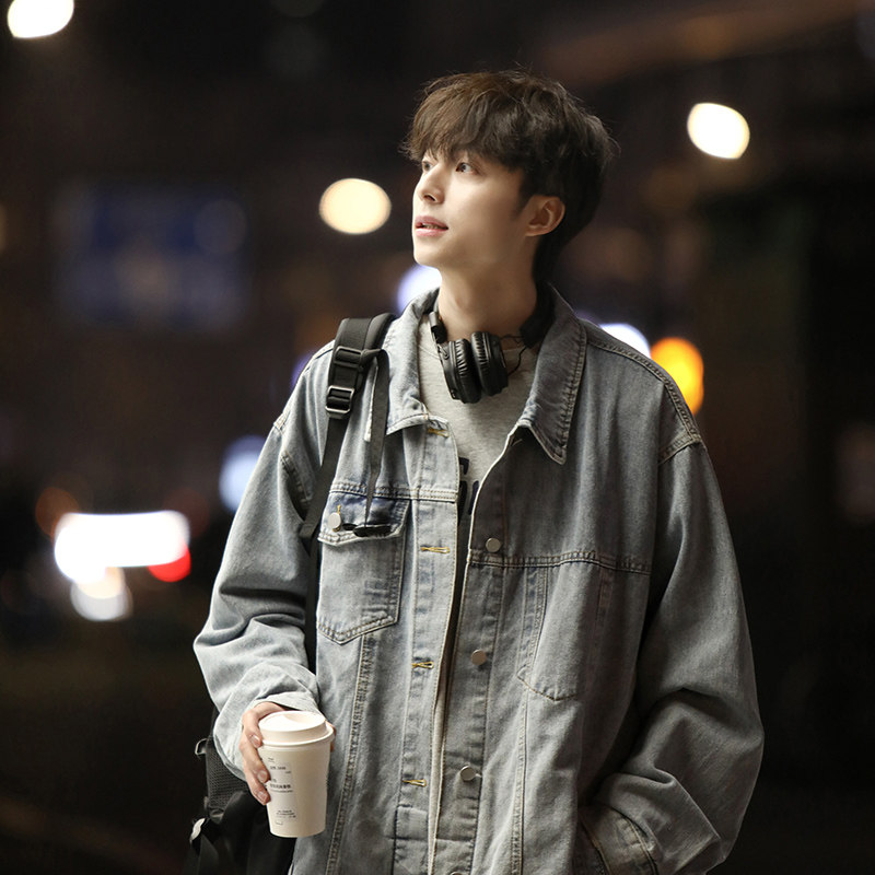 大码宽松痞帅牛仔外套男款春秋青少年户外山系高级感复古chic夹克