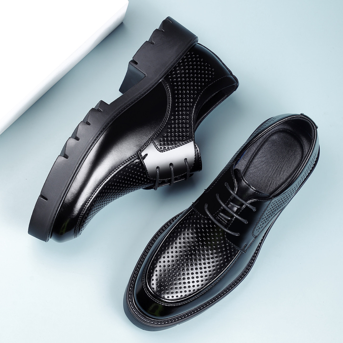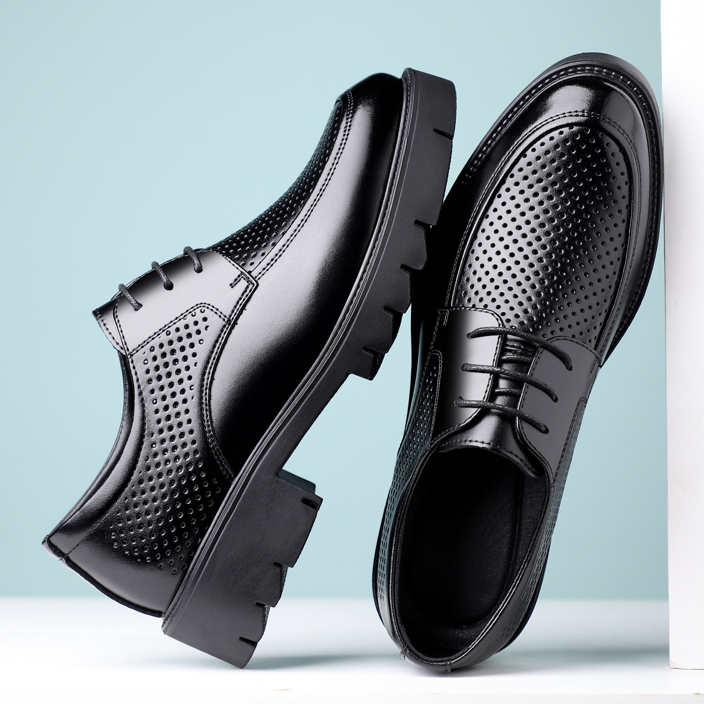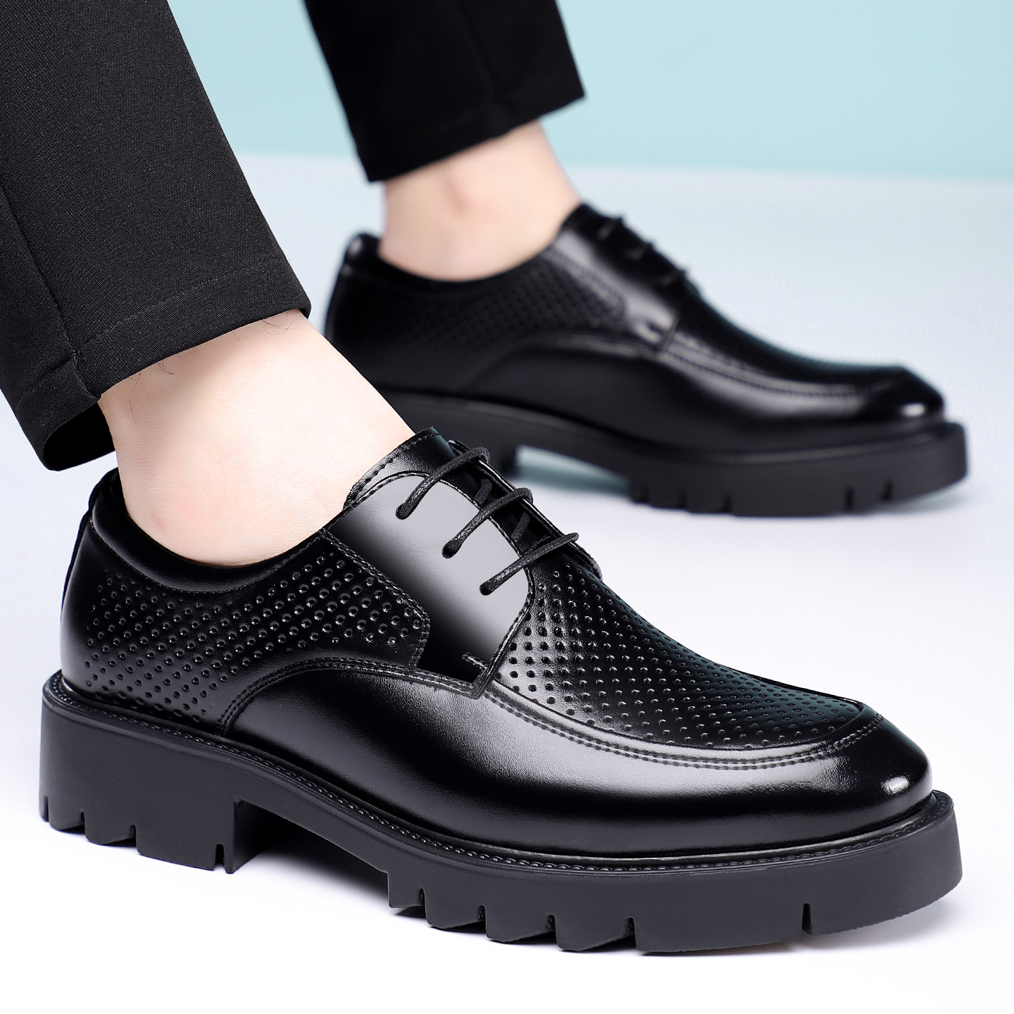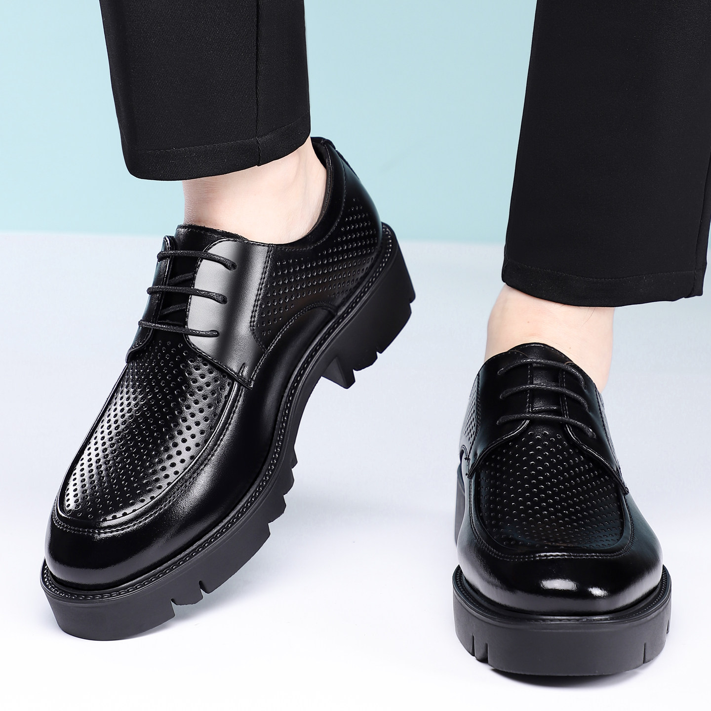 男鞋夏季镂空内增高8CM/10CM商务正装厚底洞洞凉鞋系带新郎结婚鞋