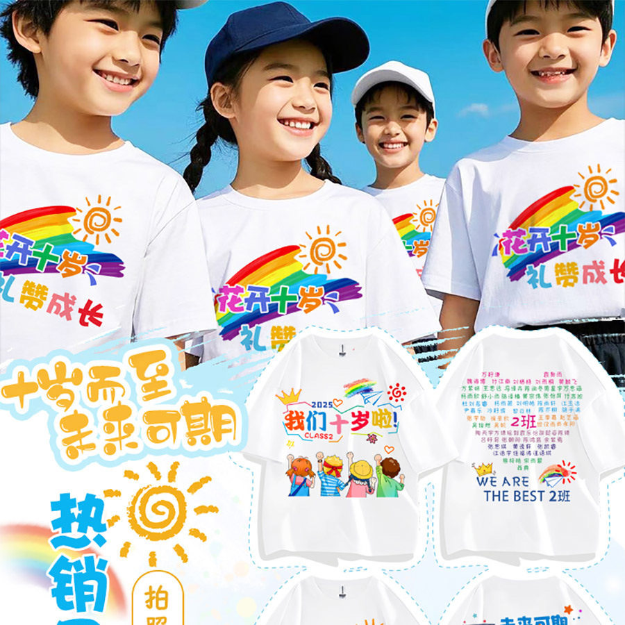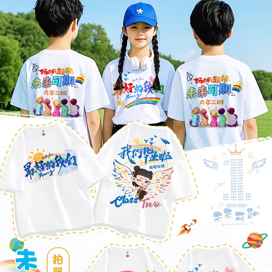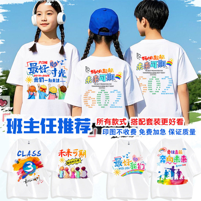 定制儿童T恤小学生毕业文化衫幼儿园班服活动圆领运动会团体短袖