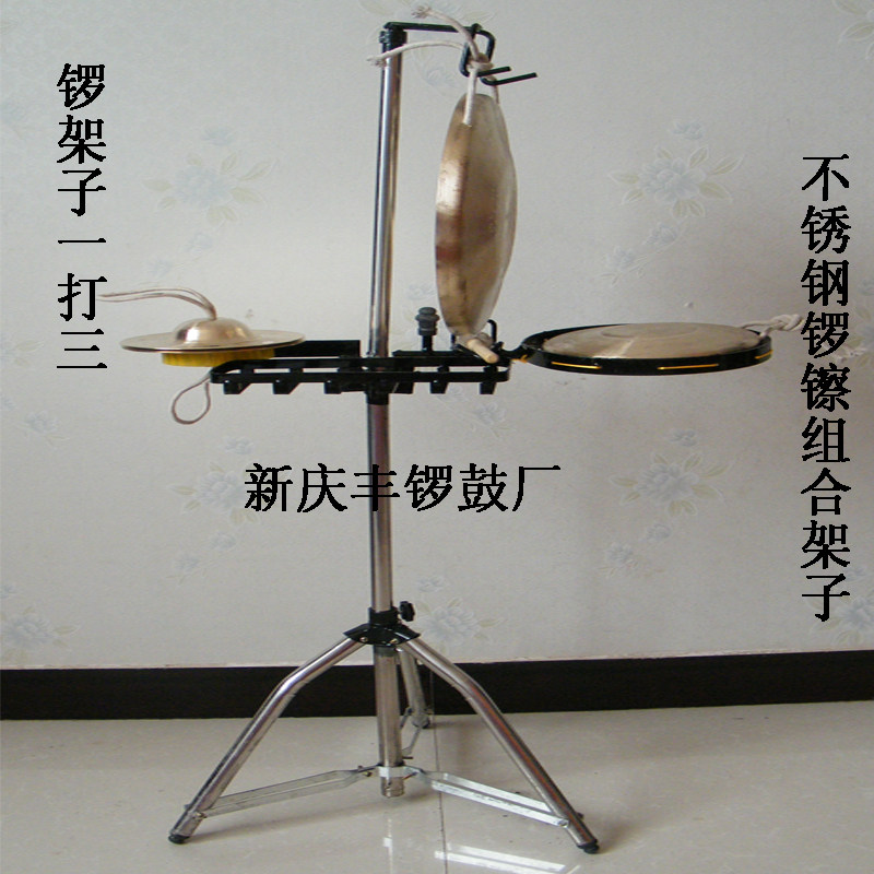 可调高低铜锣架子折叠加粗不锈钢铜锣架锣挂锣架一打三锣架勾锣架