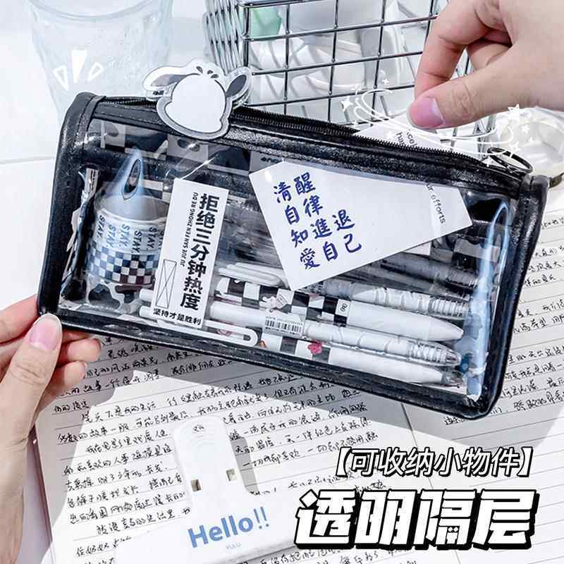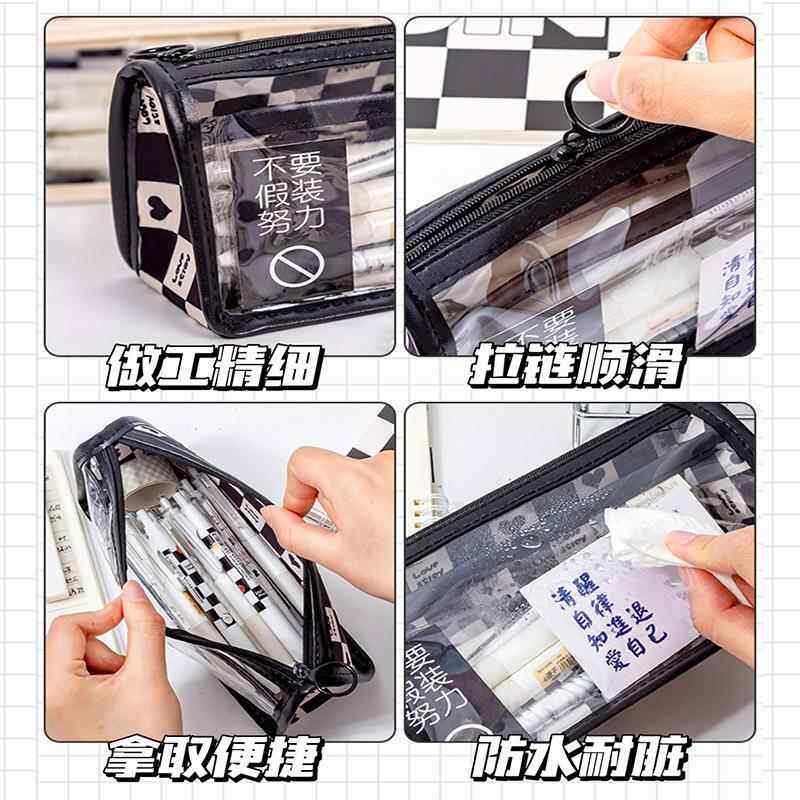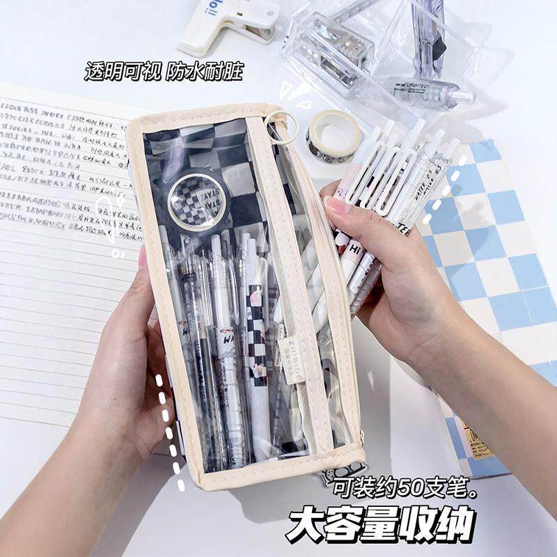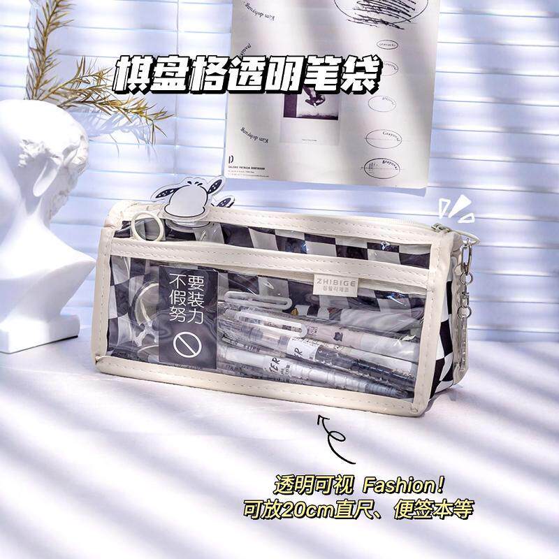 2024年新款棋盘格透明笔袋女生高颜值文具袋初中学生简约铅笔盒女孩小学生大容量黑白格子男孩高中小众设计感