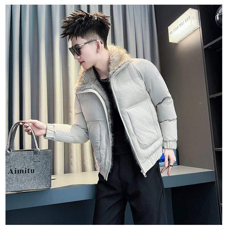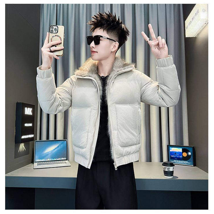 时尚洋气毛领棉服外套男款痞帅高级感加厚棉衣潮流百搭冬季厚外套