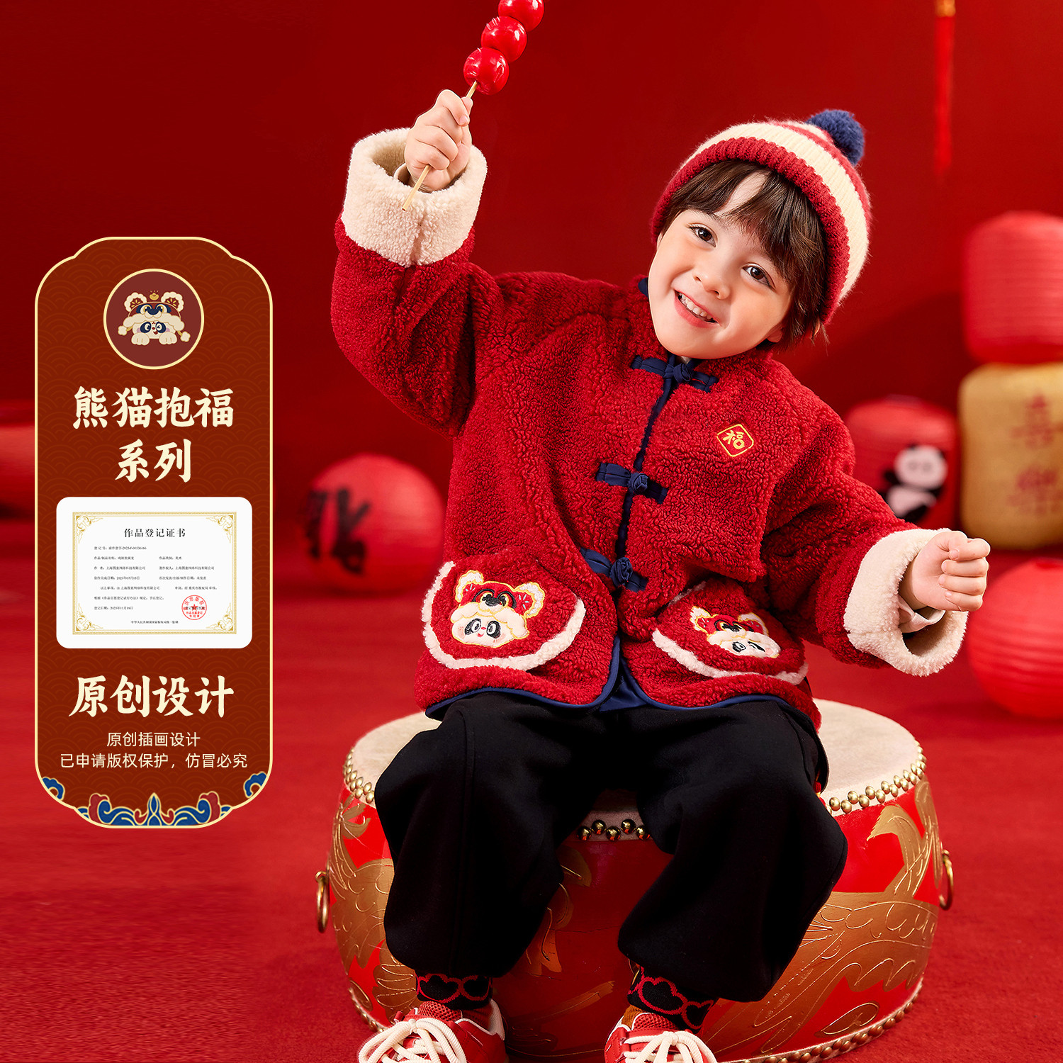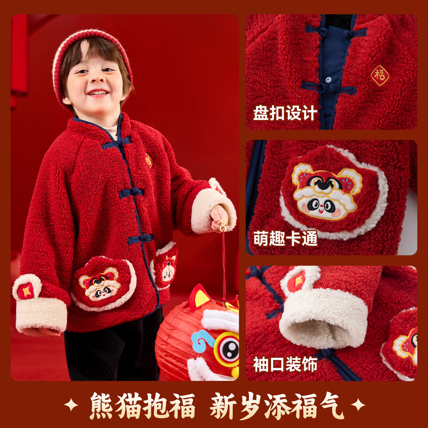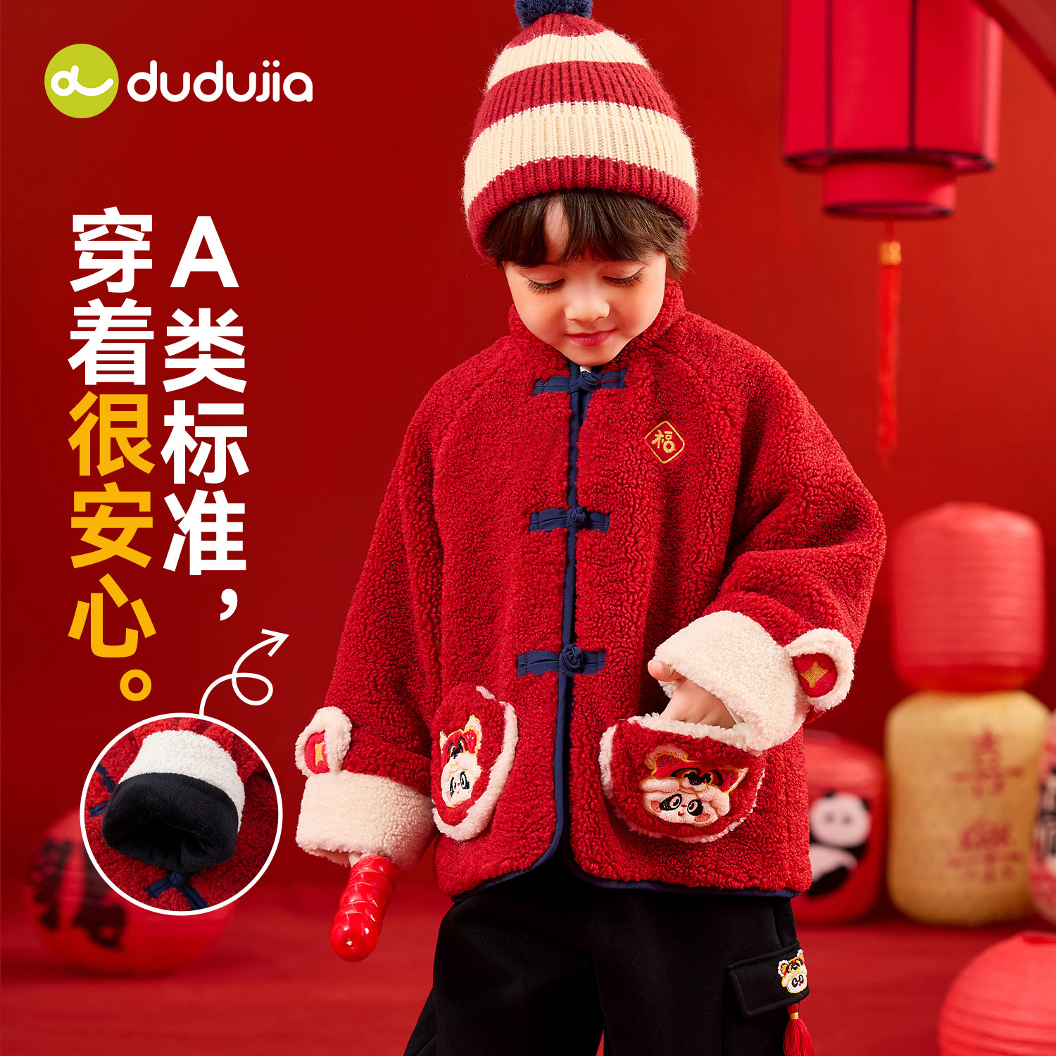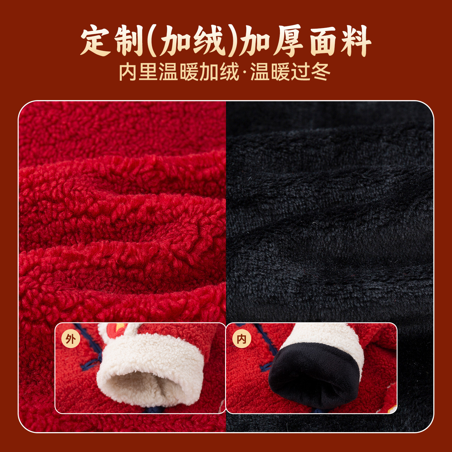 嘟嘟家男童外套儿童冬季拜年服宝宝加绒上衣新款女童新年衣服红色