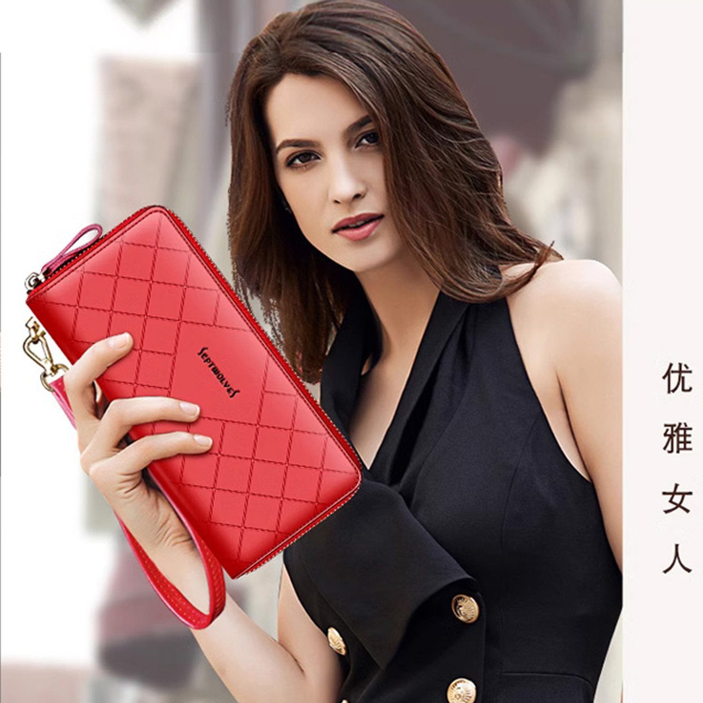 七匹狼钱包女士长款真皮拉链手拿包女生高档手机包正品钱夹卡包新