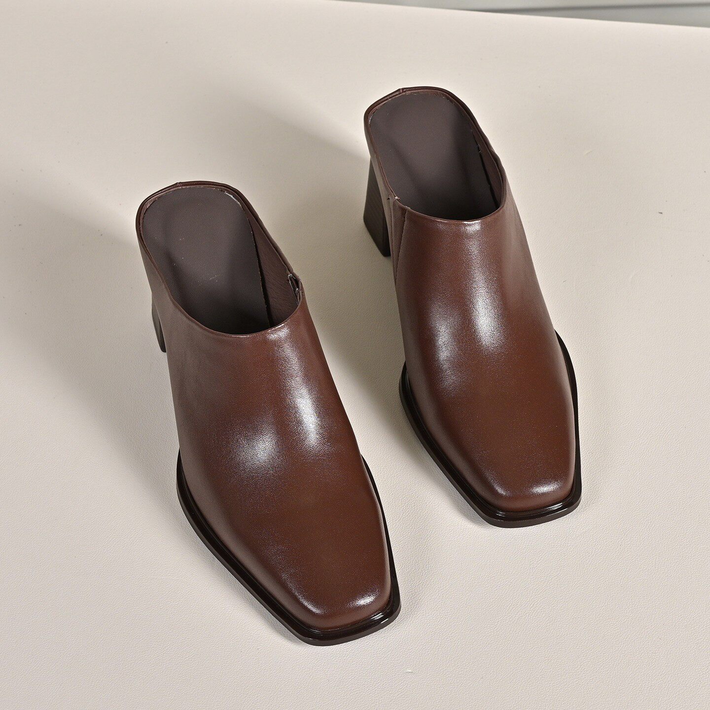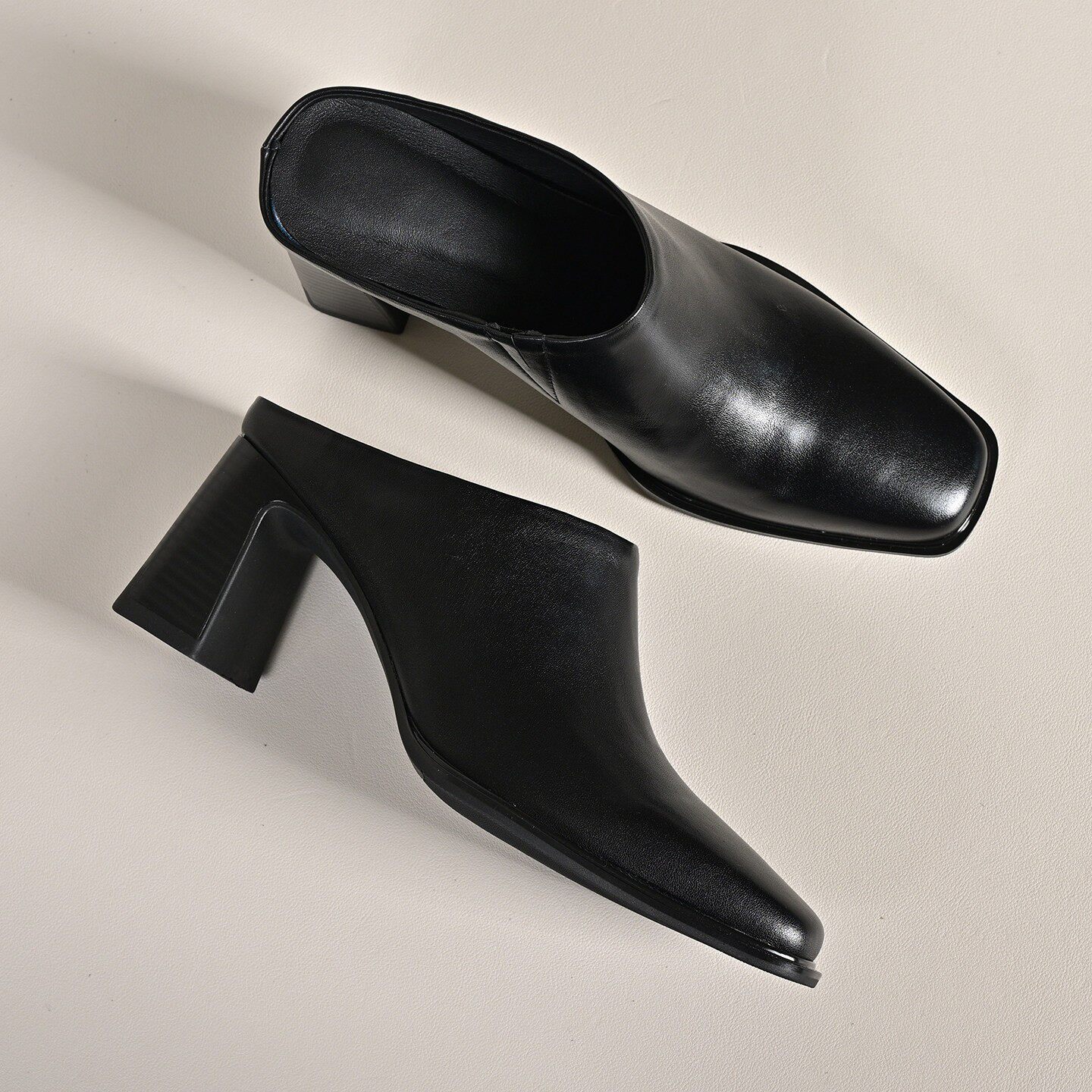 步享黑色拖鞋女夏外穿包头高级感简约方头粗跟高跟真皮半拖穆勒鞋