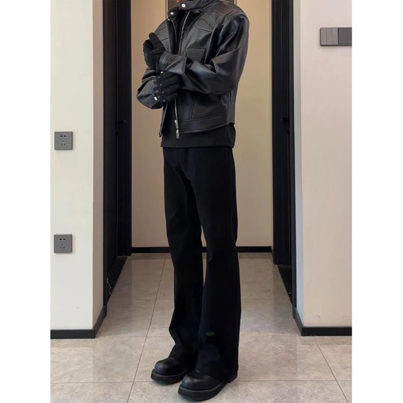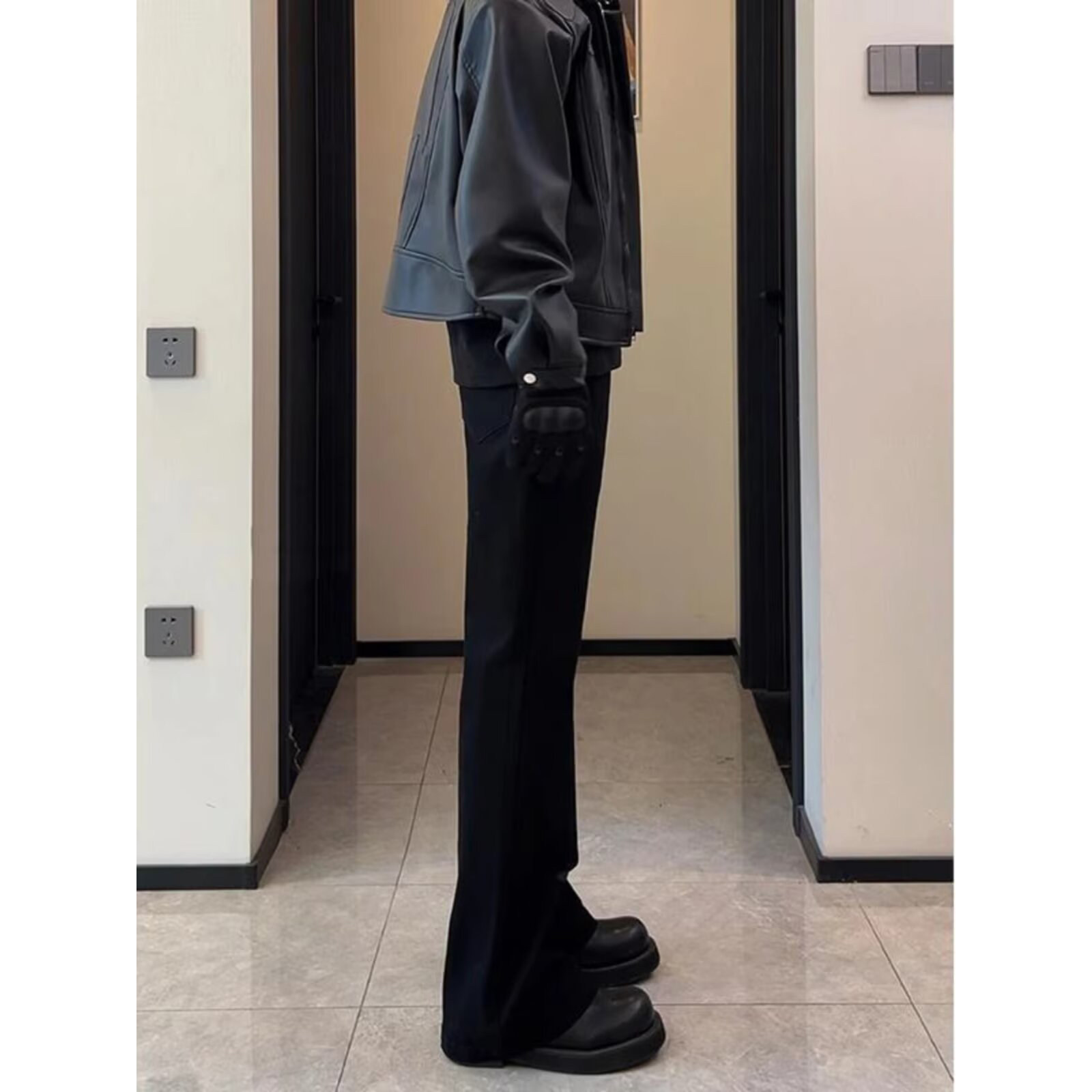 cleanfit弯刀西裤微喇男款秋冬加绒黑色显瘦裤子运动休闲直筒长裤
