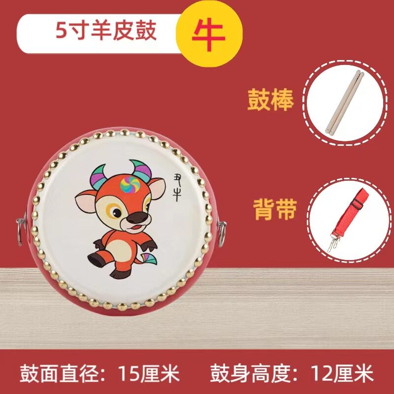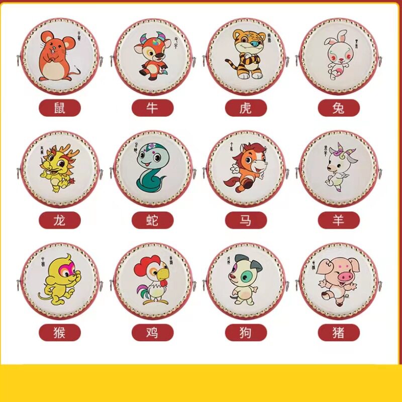 牛皮鼓小鼓儿童益智堂鼓幼儿打击乐器儿童玩具鼓十二生肖鼓手敲鼓