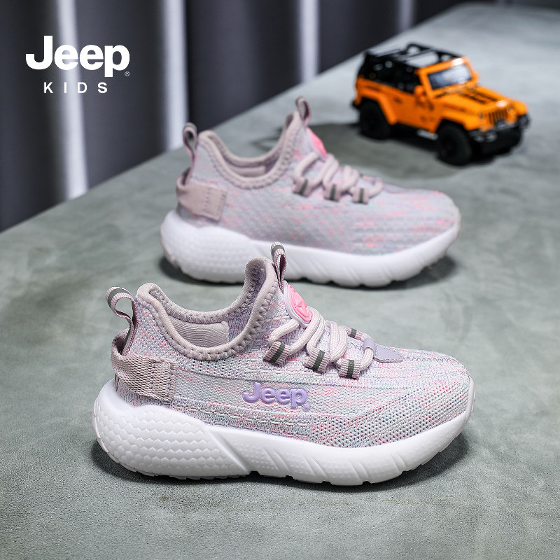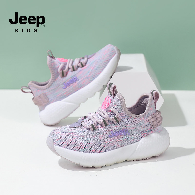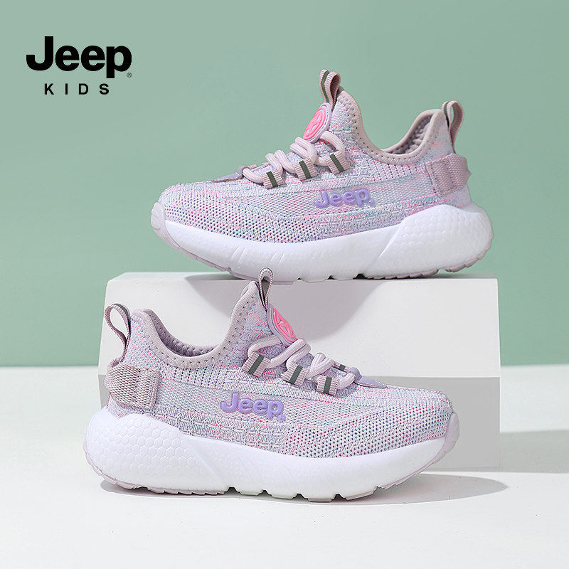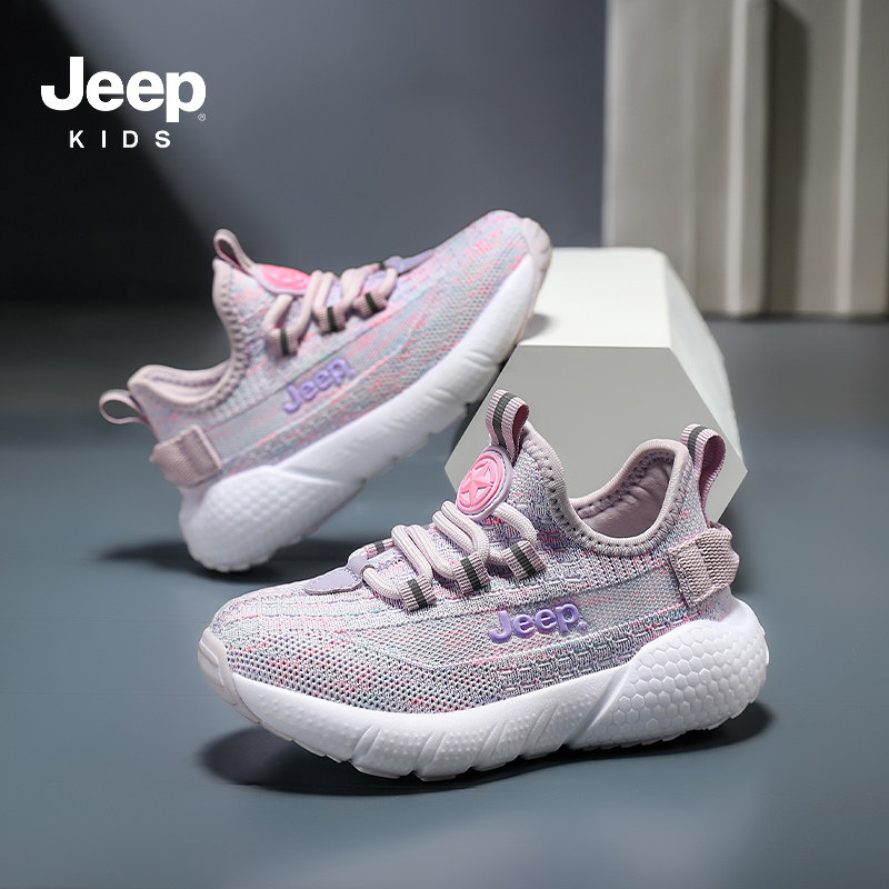 Jeep童鞋女童2026新款运动鞋春夏款网面透气轻便儿童一脚蹬休闲鞋