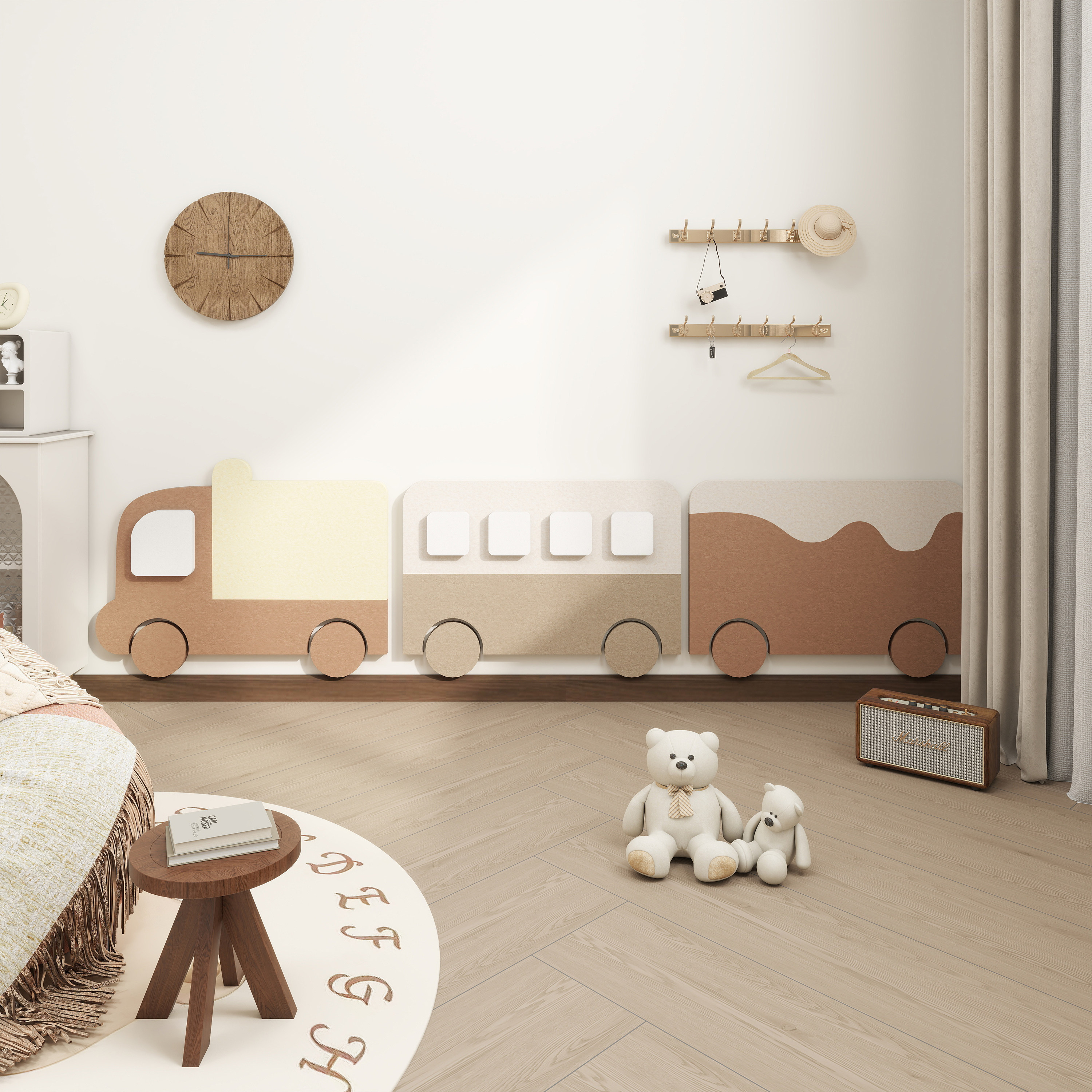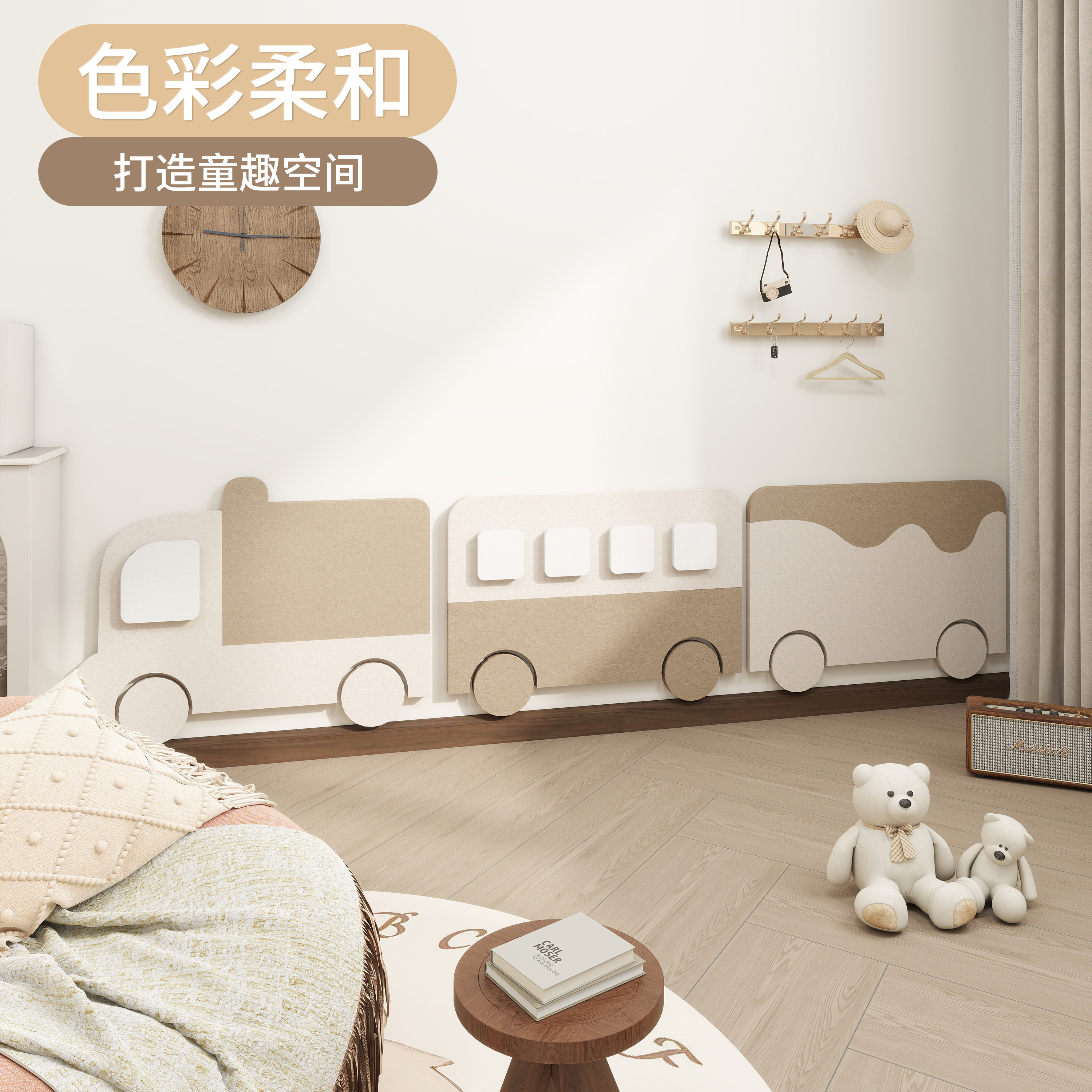 儿童房墙面装饰3d立体免打孔童趣风小火车墙围防撞护墙板遮丑墙贴