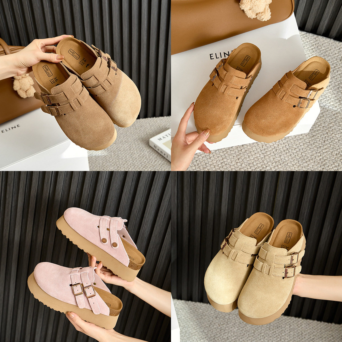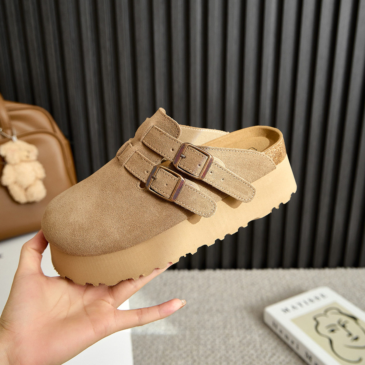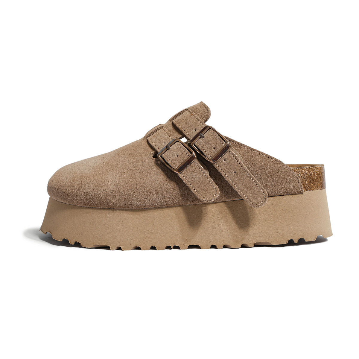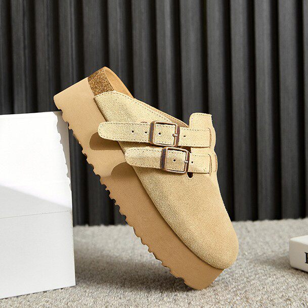 厚底勃肯鞋女真皮牛反绒包头半拖鞋外穿日系博肯鞋矮个子增高6CM