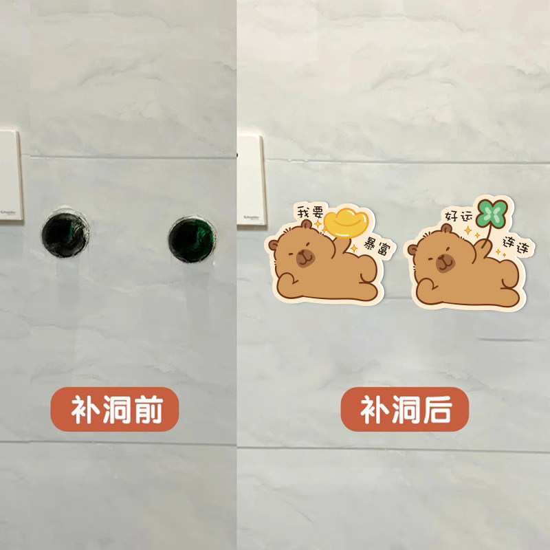 装饰墙贴遮丑补洞贴纸自粘卡皮巴拉图案卧室房间门上墙面布置贴画