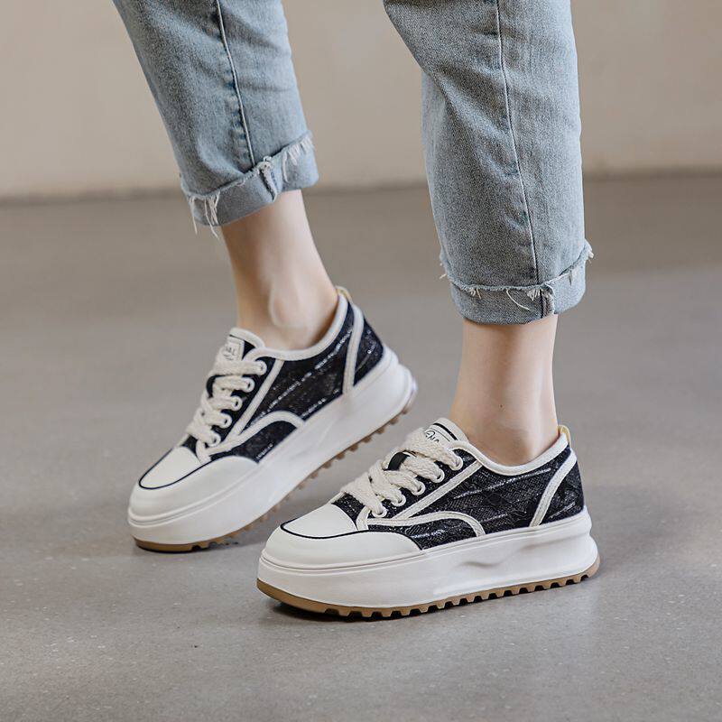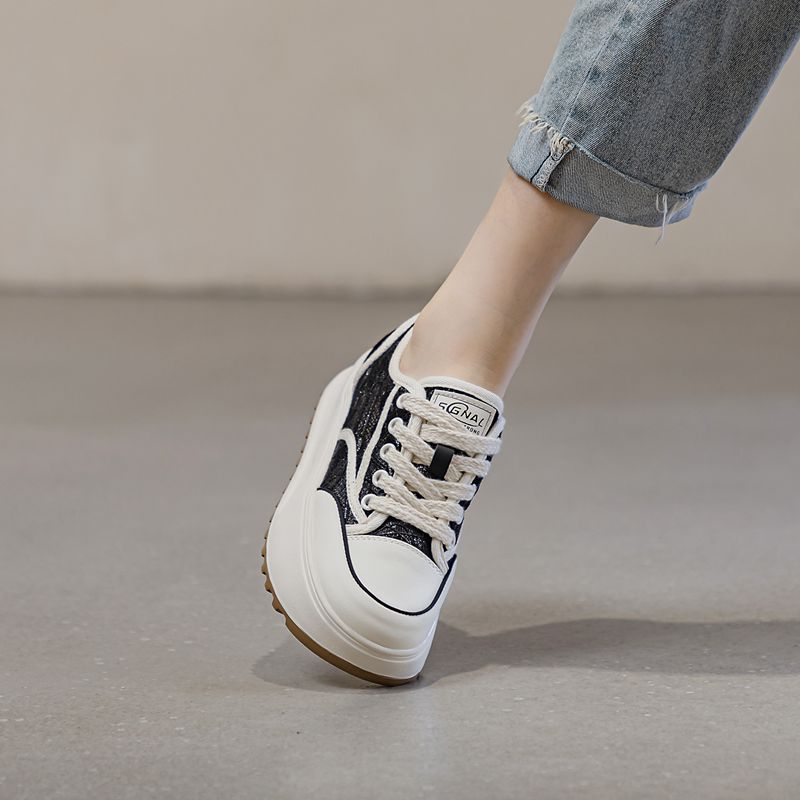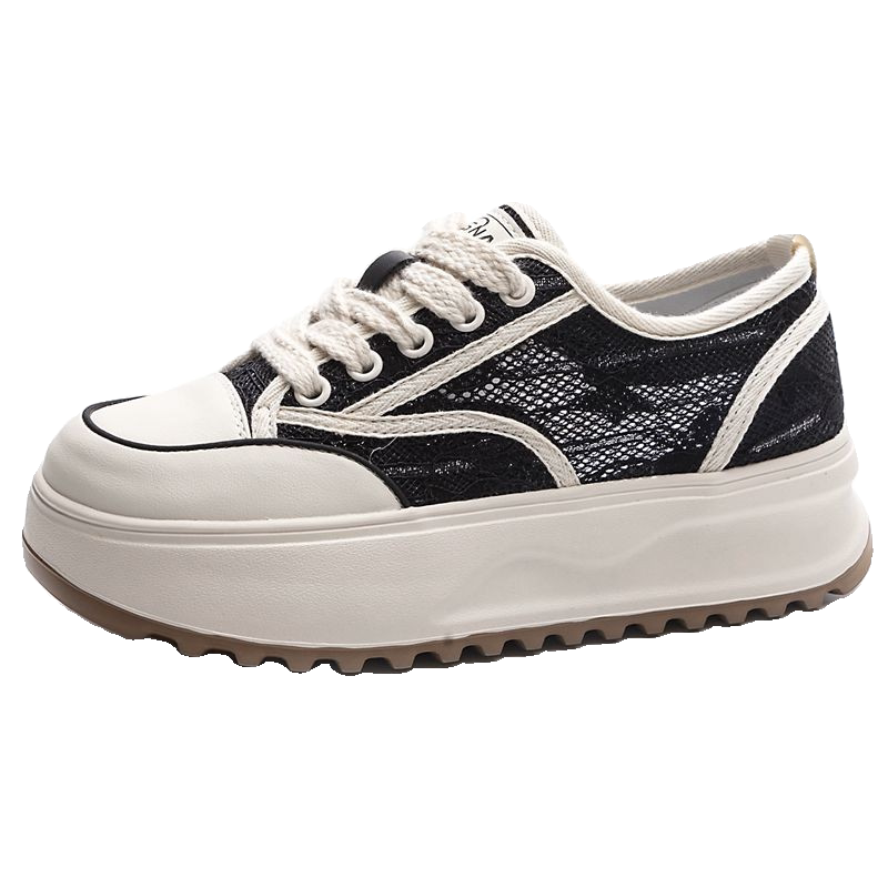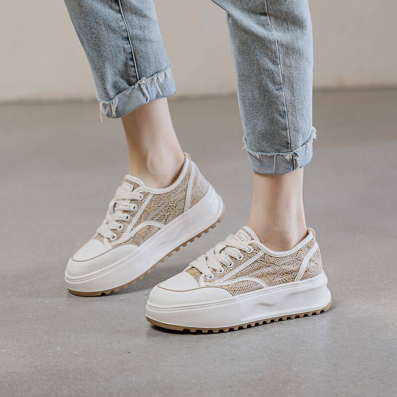 夏季薄款小白鞋子女网面透气女鞋2026新款百搭圆头系带厚底休闲鞋