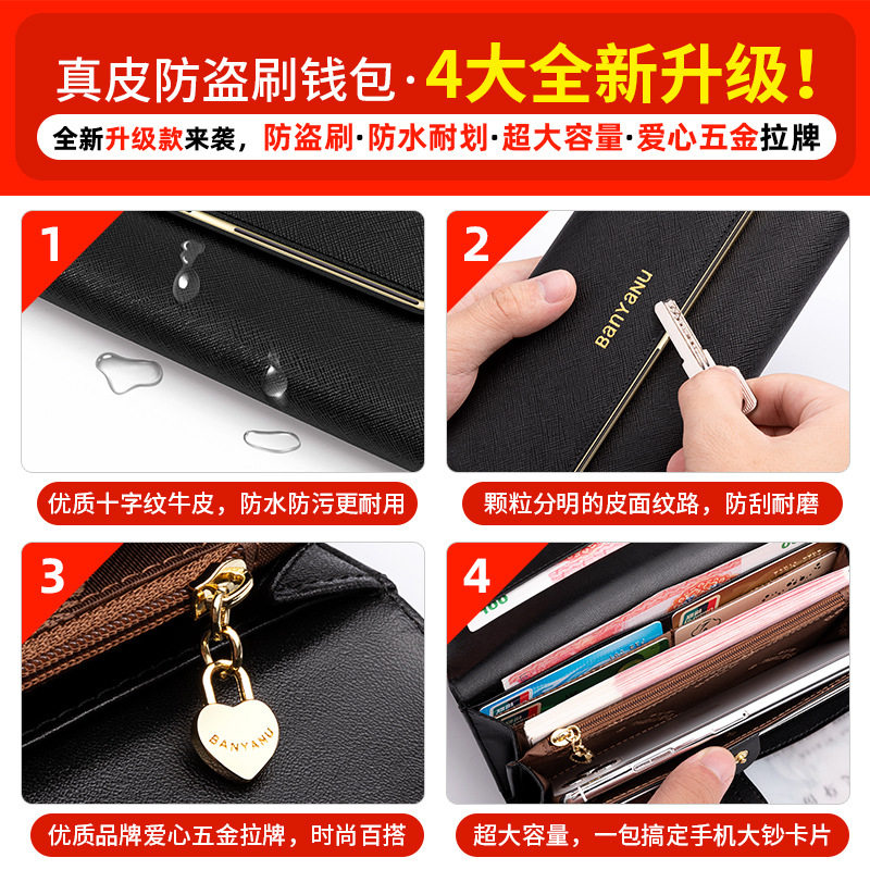 钱包女长款三折2025新款女士皮夹时尚真皮女款品牌专柜正品钱夹薄