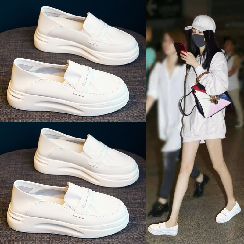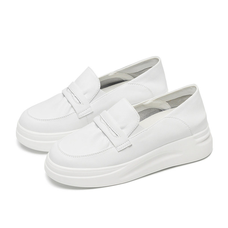 全牛皮~内增高小白鞋女厚底真皮2026夏季薄款透气护士一脚蹬单鞋