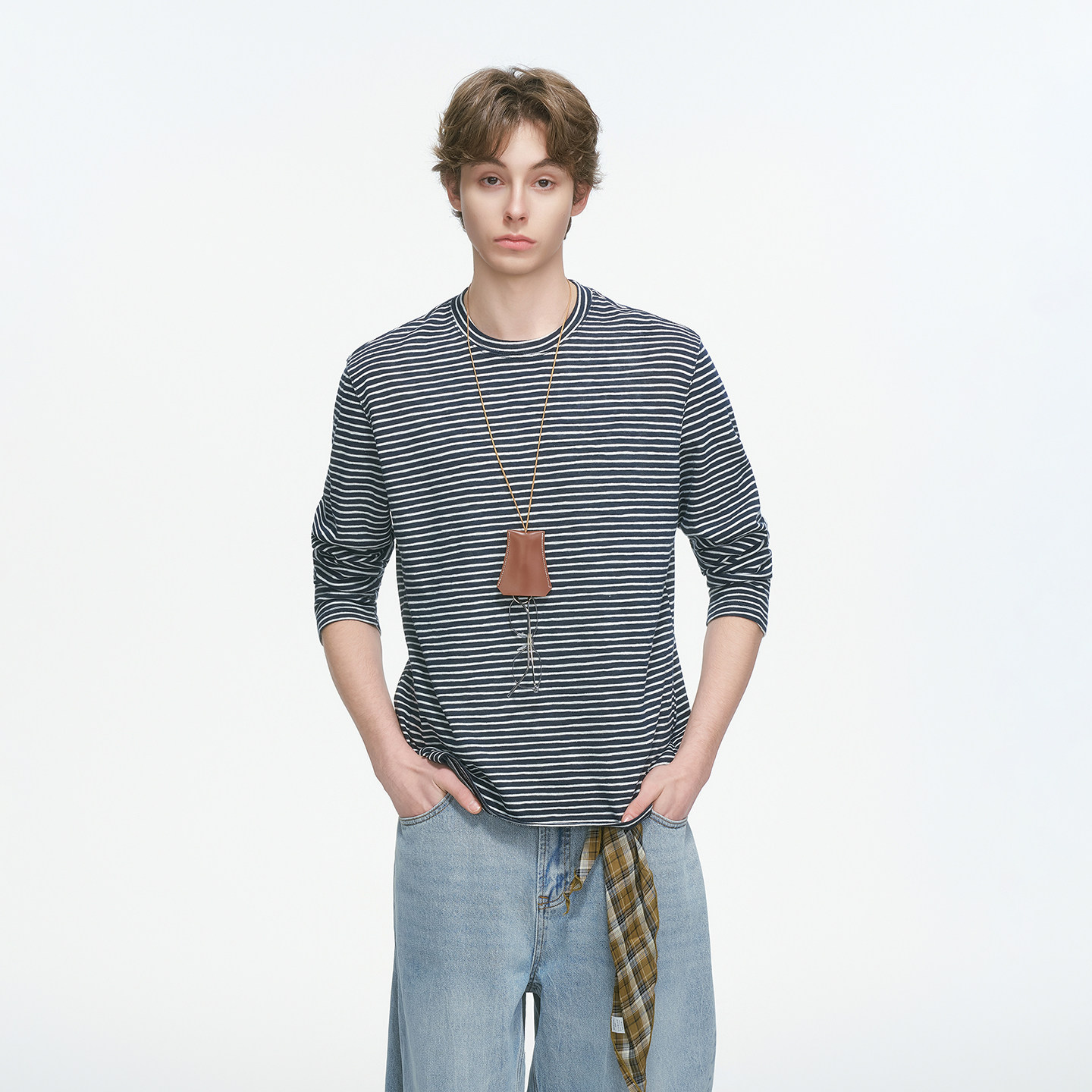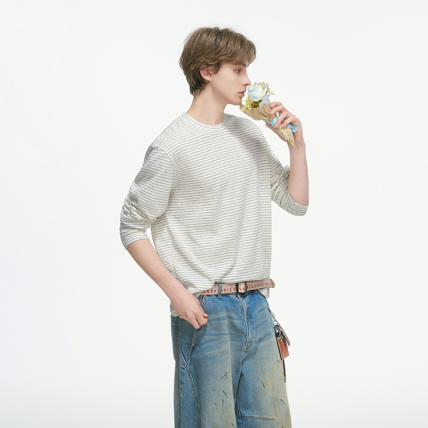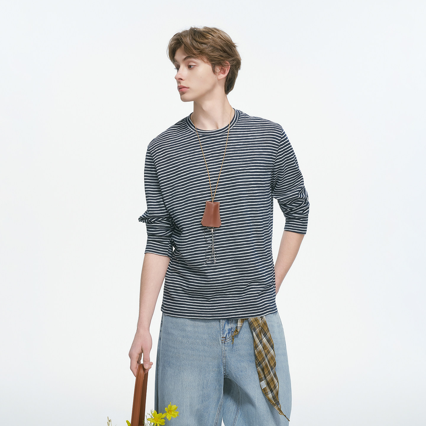 Dream made 美式通勤细条纹长袖T恤男款春秋季休闲内搭打底衫上衣