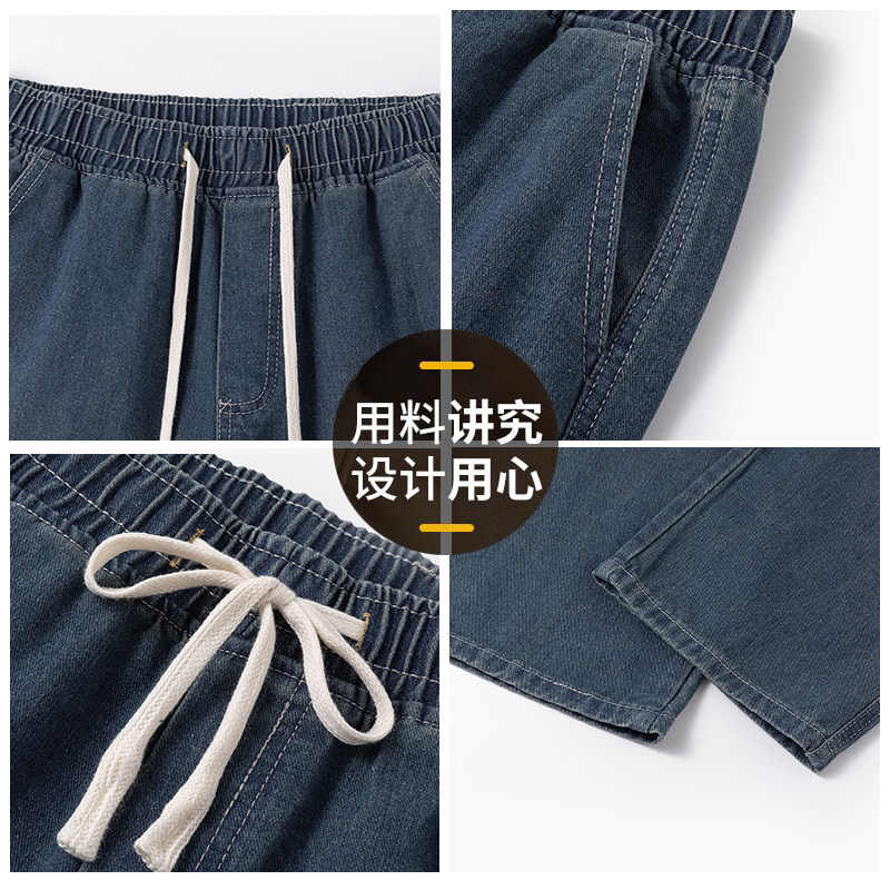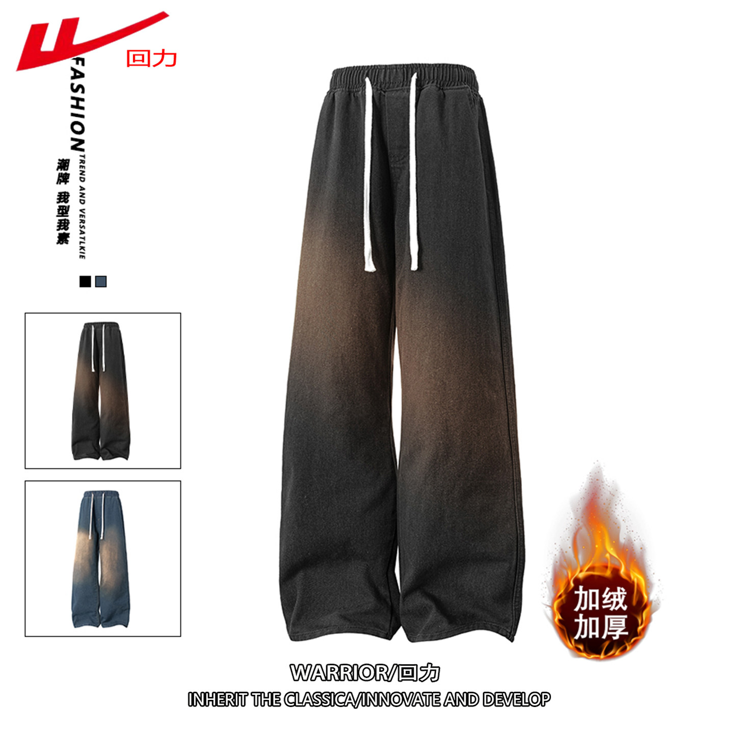 回力港风休闲牛仔裤男款秋冬季新款潮牌宽松直筒阔腿抽绳裤子男生