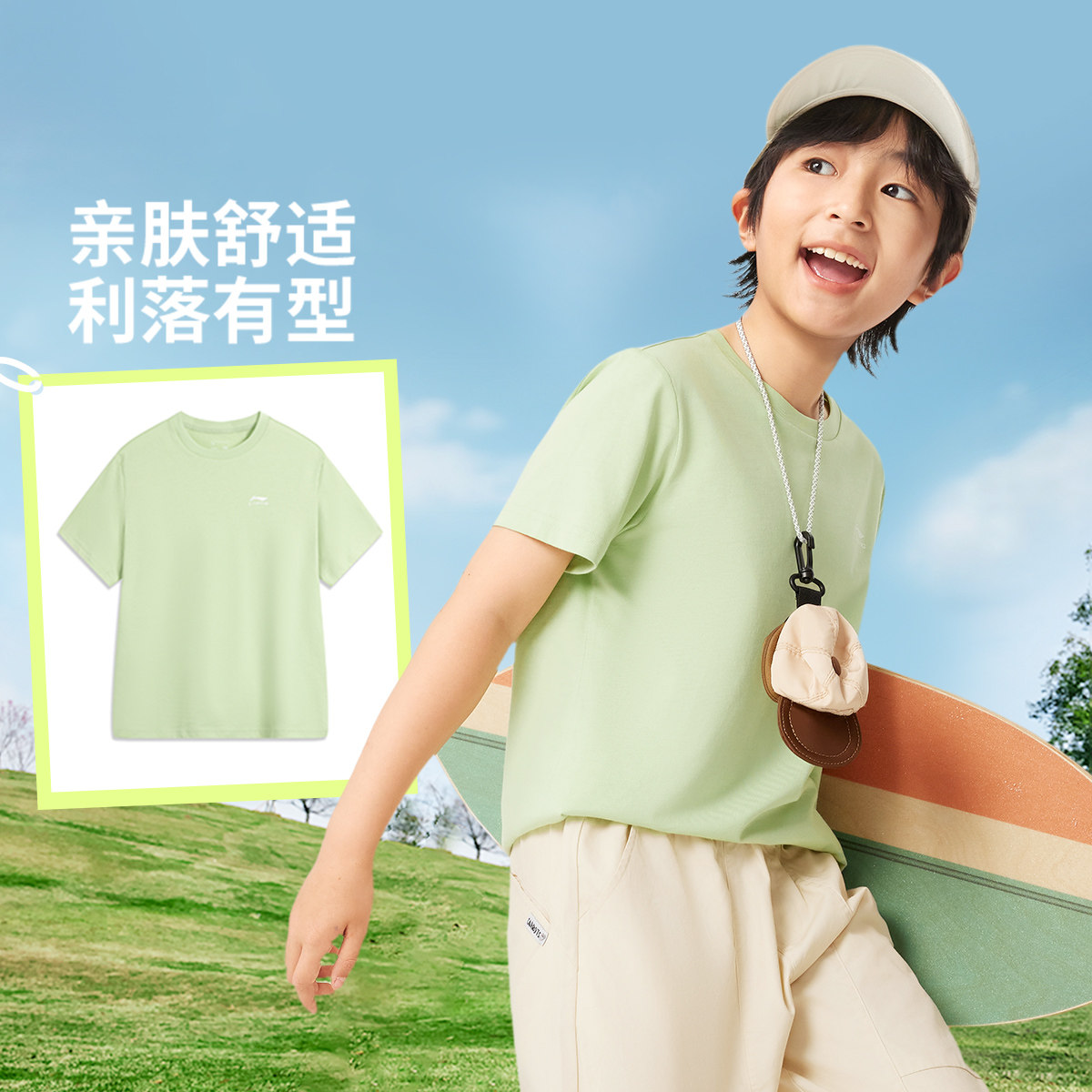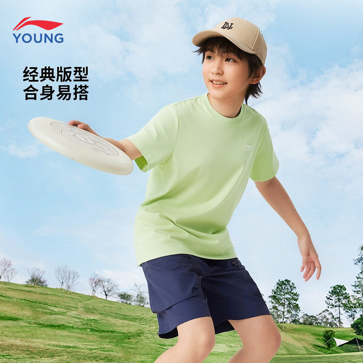 李宁童装儿童短袖T恤男童2026夏季新款棉感透气舒适运动上衣白色