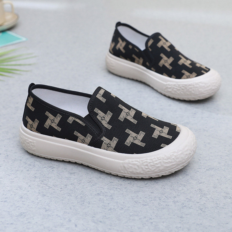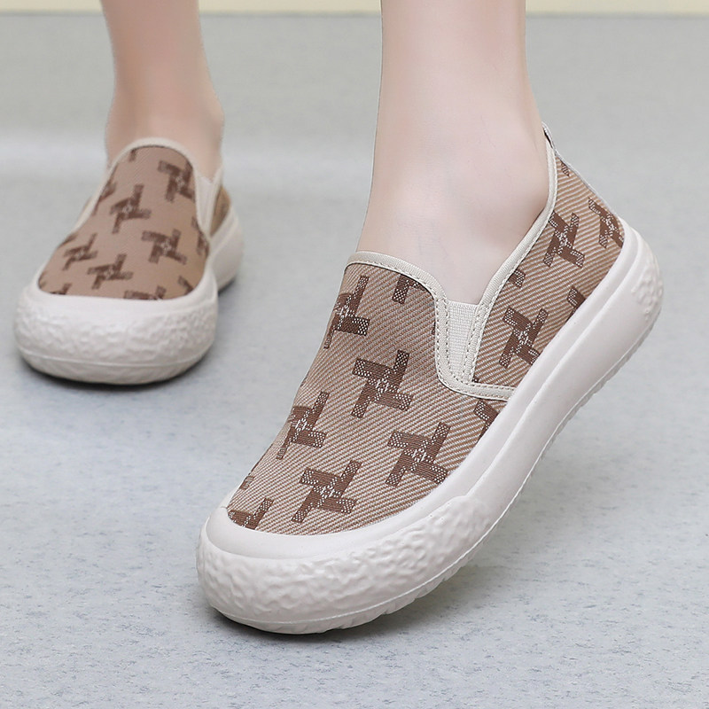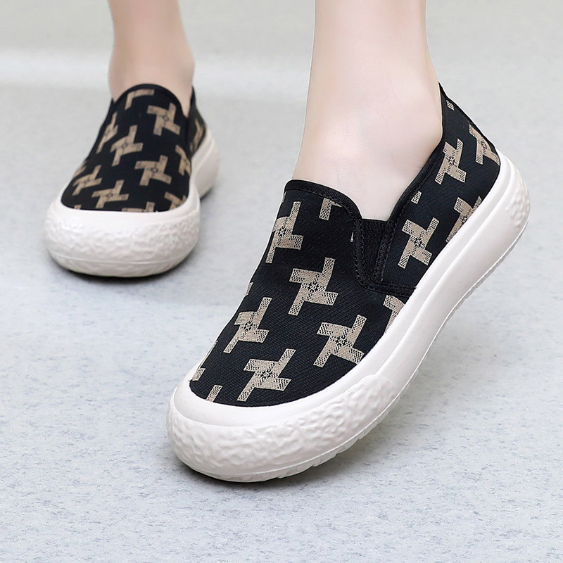 春夏新款时尚百搭女鞋老北京布鞋女休闲厚底一脚蹬女鞋浅口透气鞋