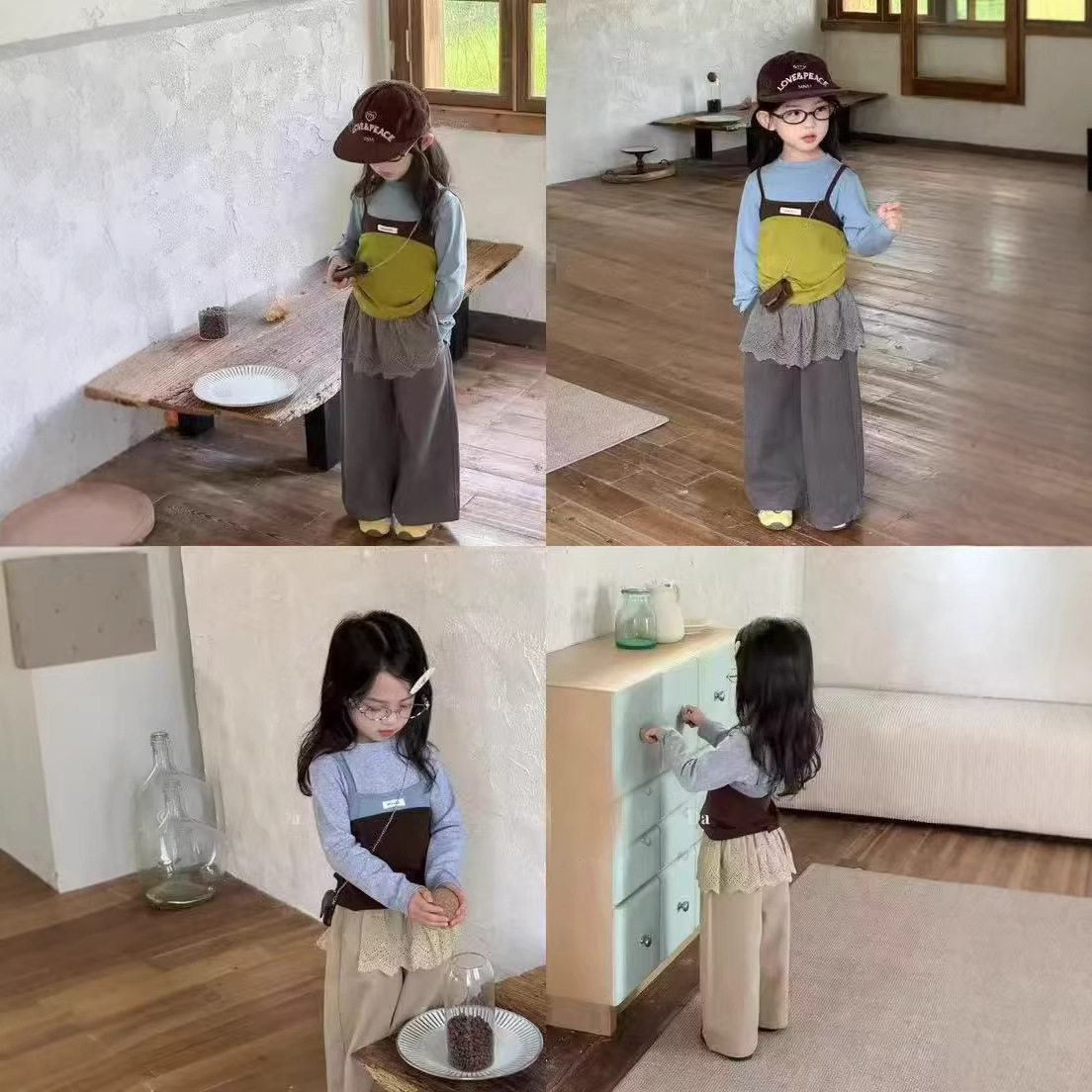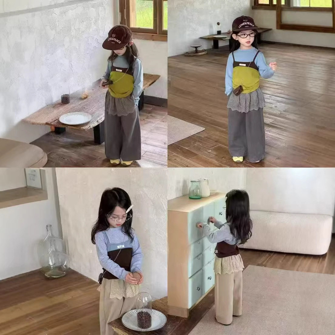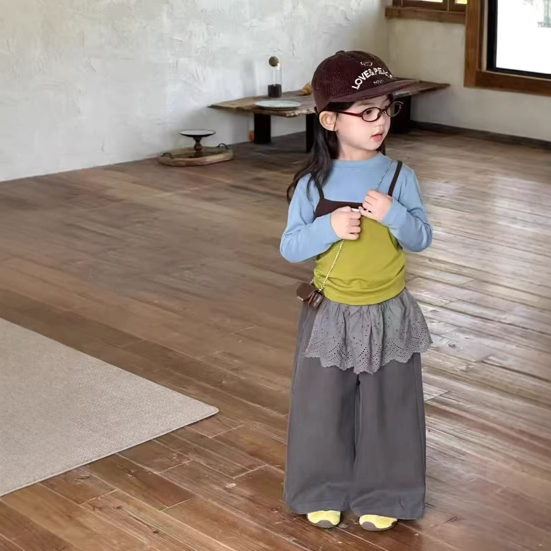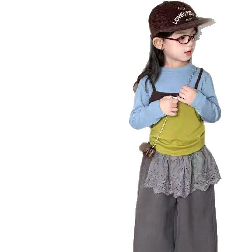女童早春套装穿搭2026新款儿童洋气叠穿吊带打底衫休闲长裤子薄