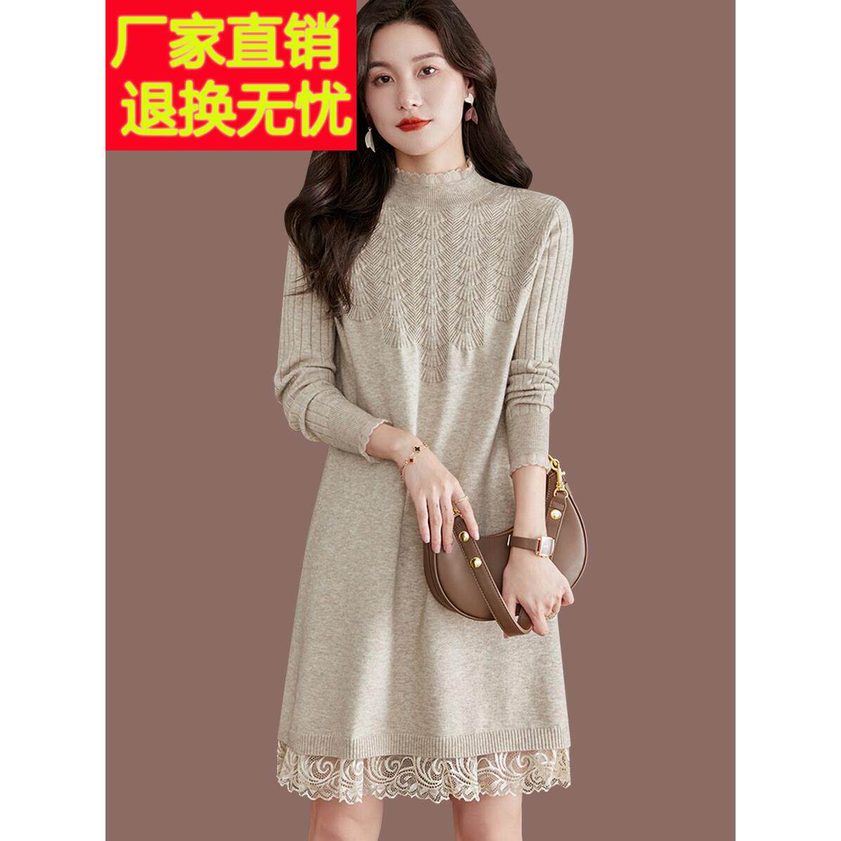 毛衣裙女中长款秋冬2025新款配大衣针织连衣裙羊毛打底洋气