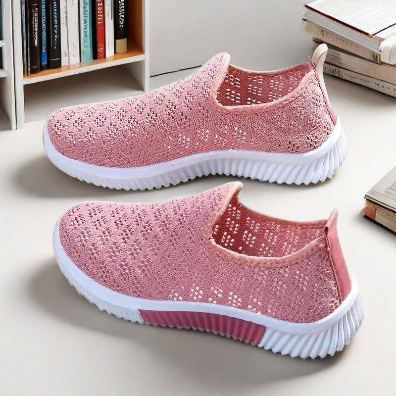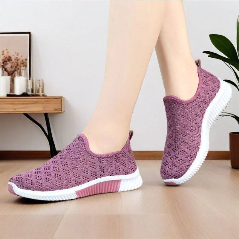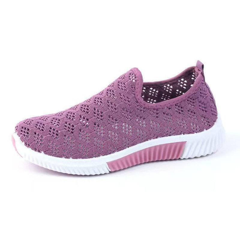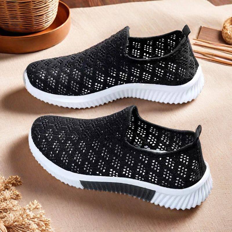 2026新款春夏款镂空网面透气休闲鞋软底防滑一脚蹬妈妈鞋平底女鞋