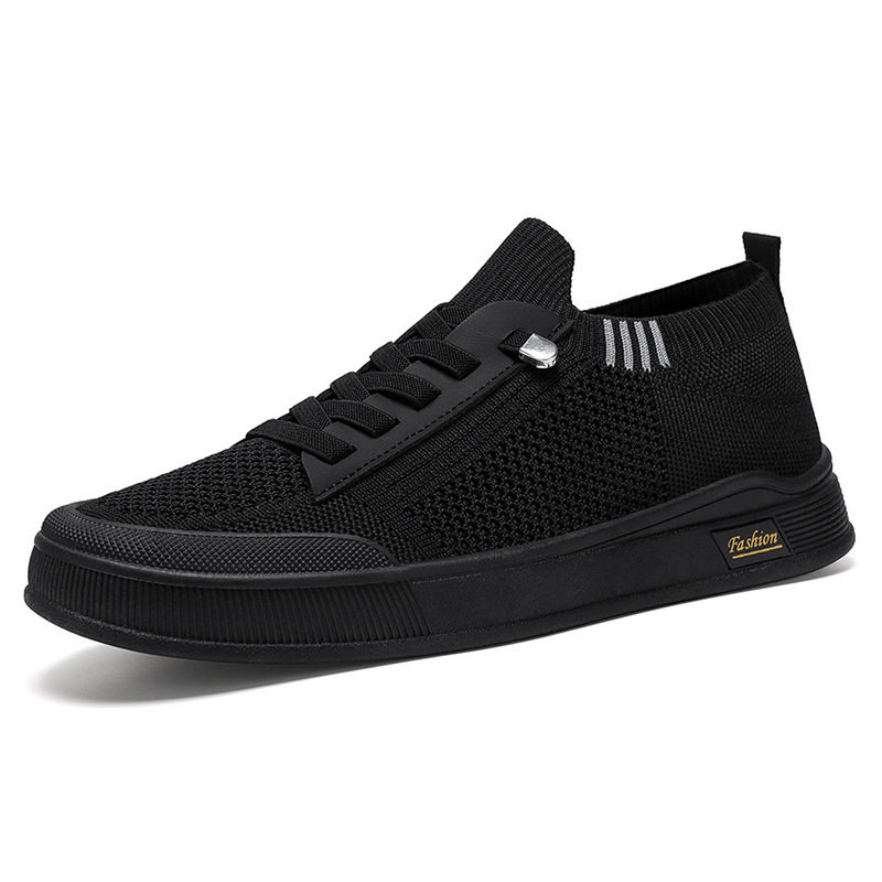 男鞋夏季透气薄款一脚蹬飞织网鞋懒人防臭上班袜子鞋网面运动板鞋