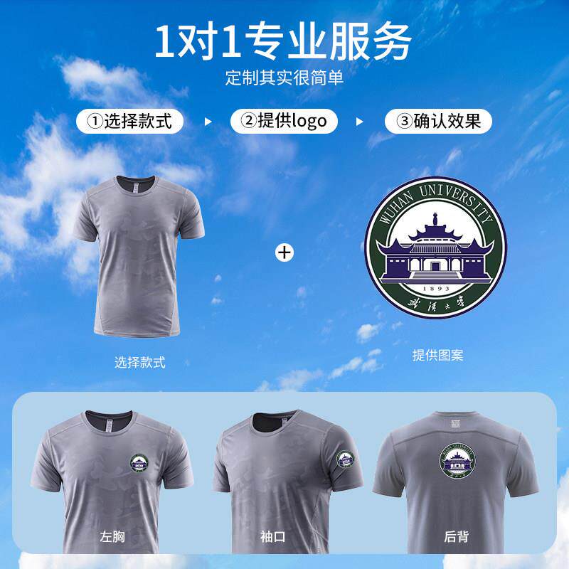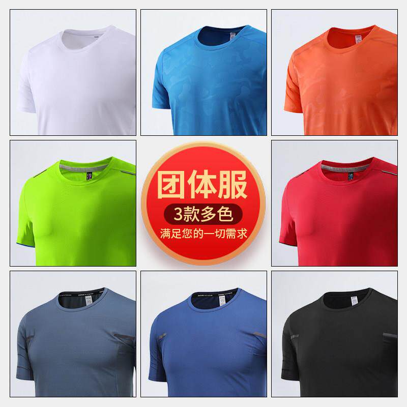 高端速干t恤定制工作服印字logo圆领压暗花运动跑步团体服装短袖