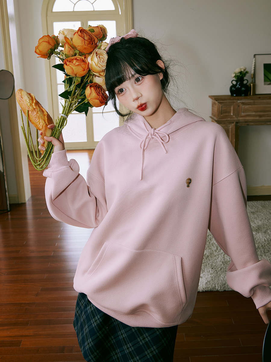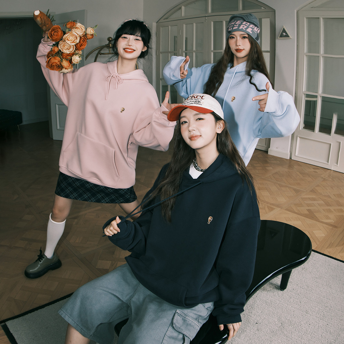 lemanism粉色春秋加绒连帽卫衣男款2025春秋400g重磅情侣外套女潮