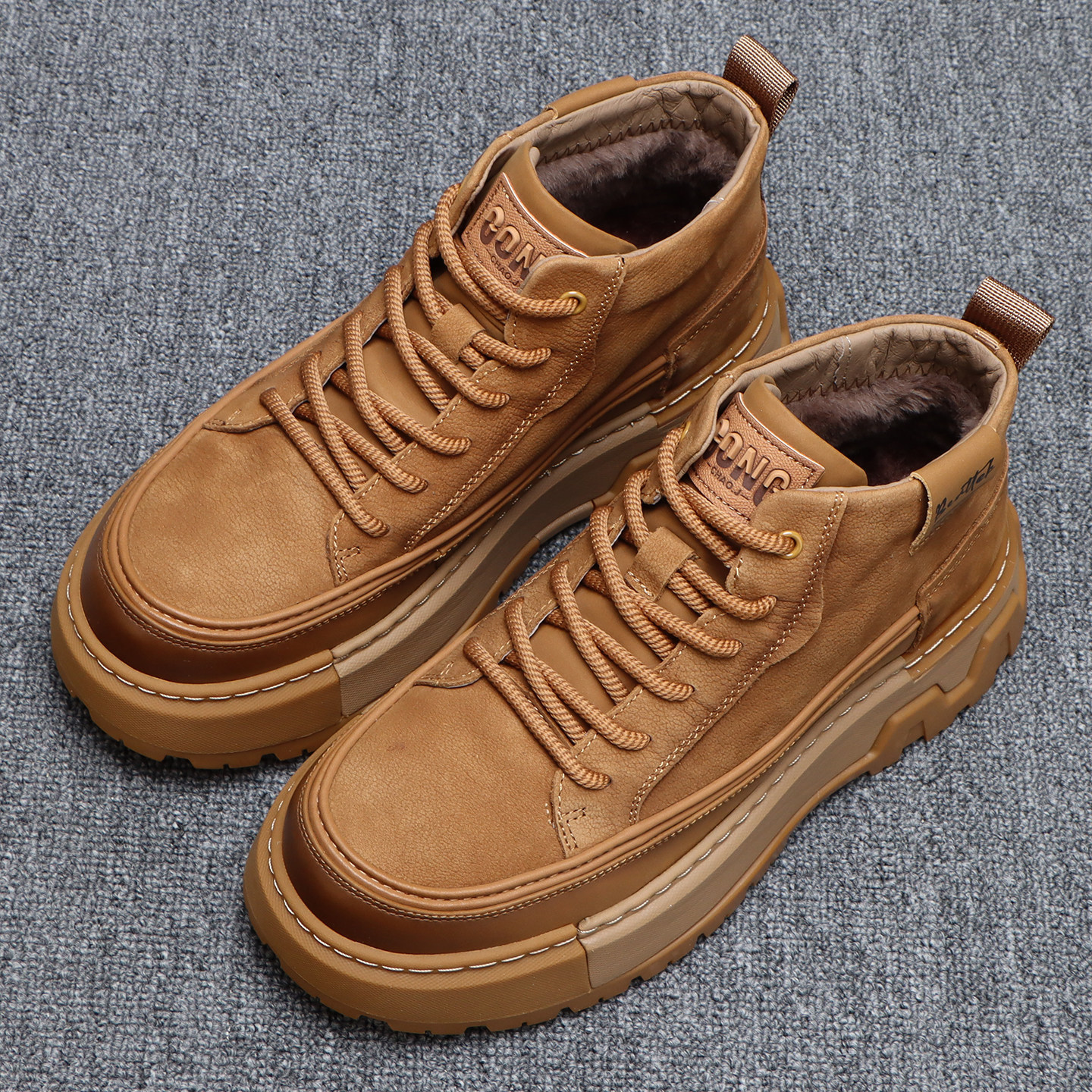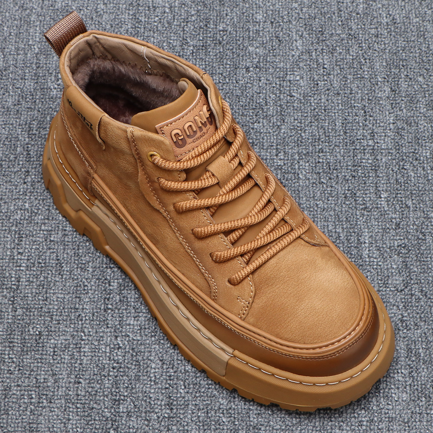 头层牛皮马丁靴男款增高厚底真皮户外工装靴冬季加绒保暖高帮男鞋