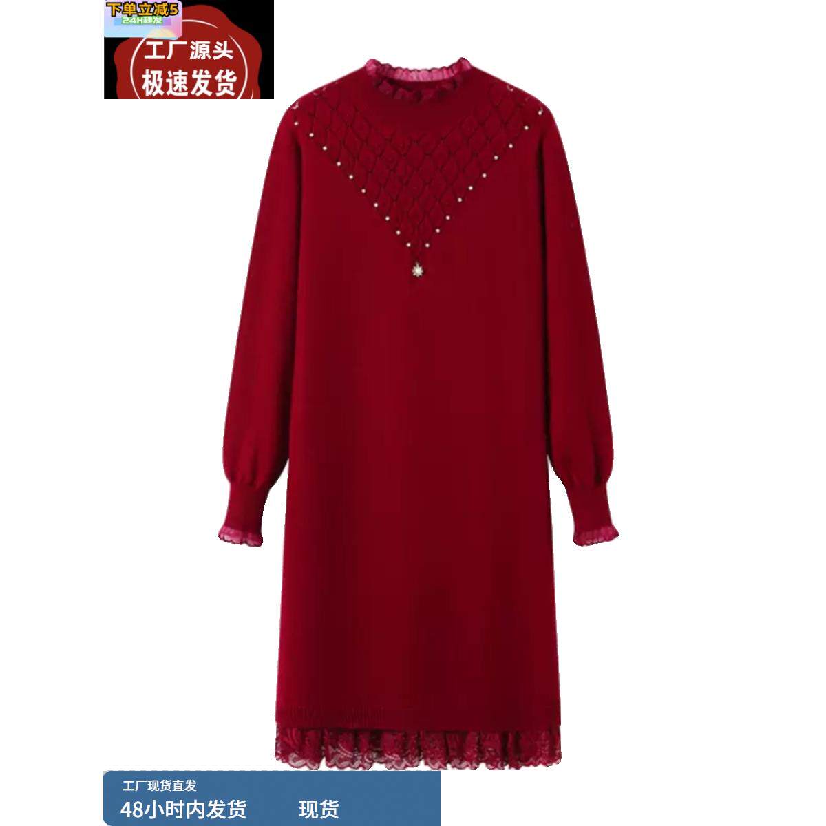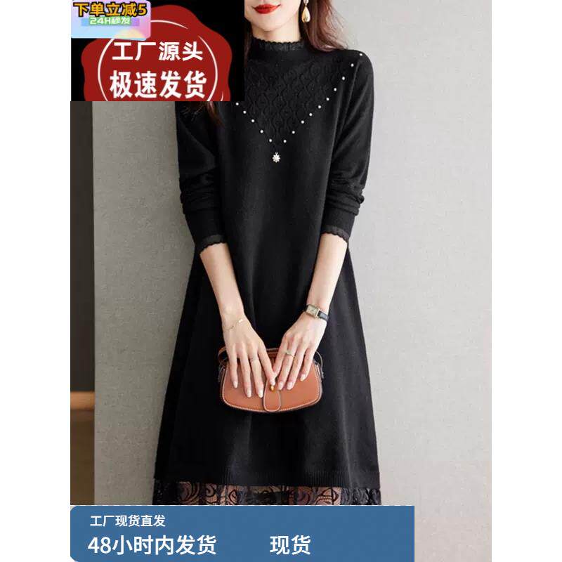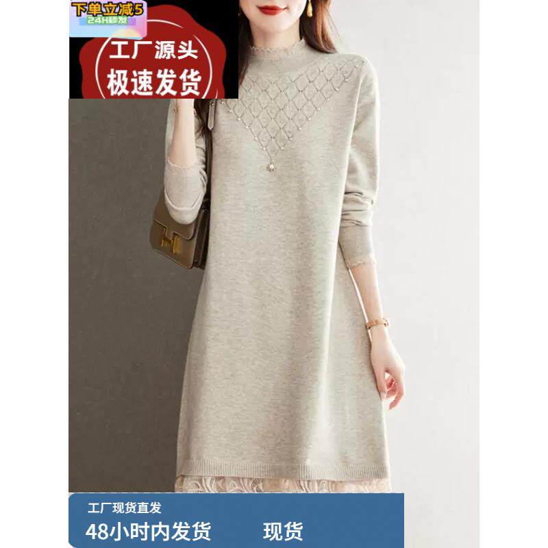 品牌折扣配大衣白色连衣裙减龄内搭高端大码女装冬胖mm打底毛衣裙