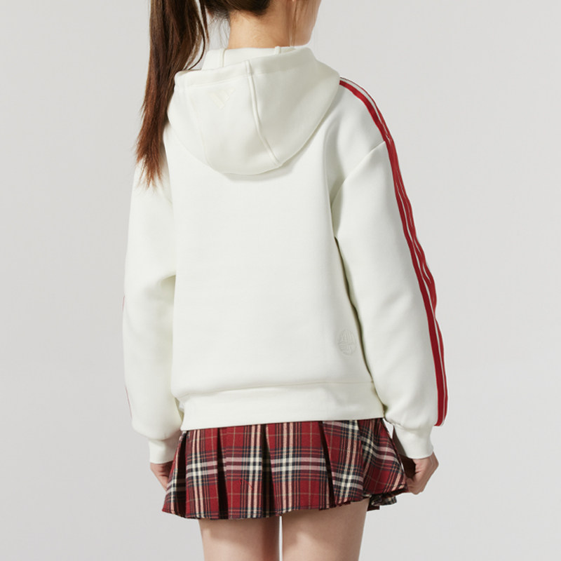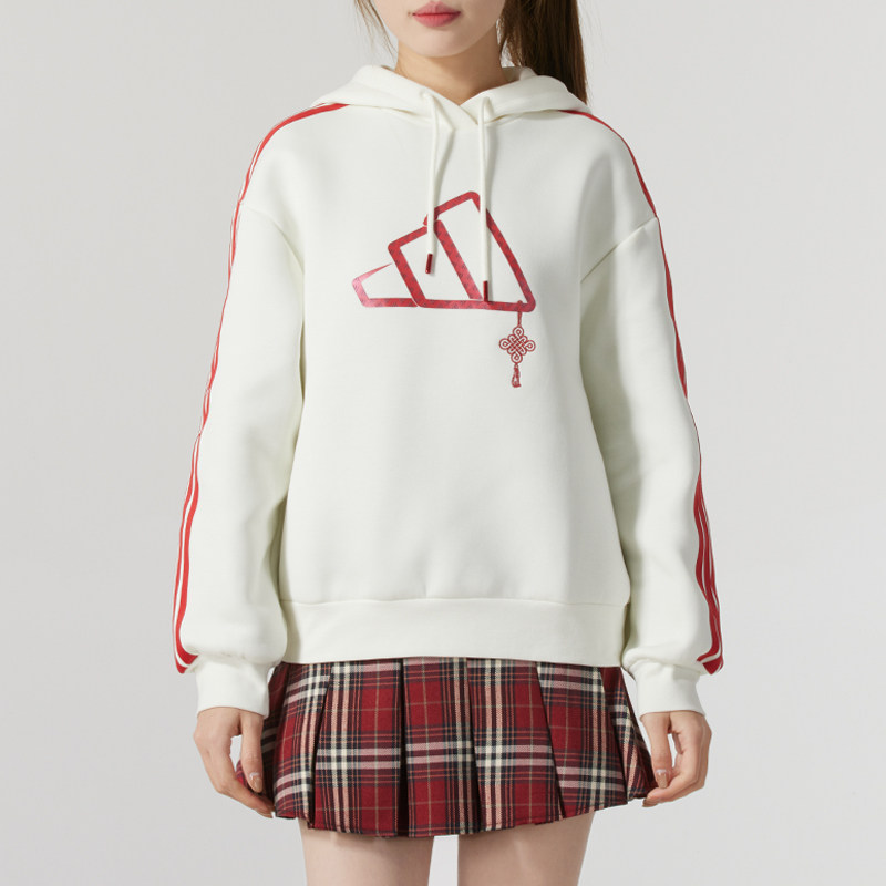 阿迪达斯卫衣女新年款连帽套头衫宽松运动服休闲针织上衣JZ1638