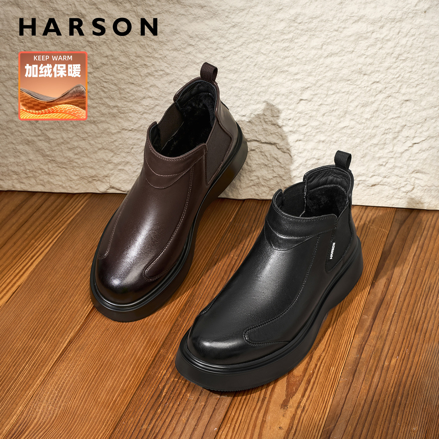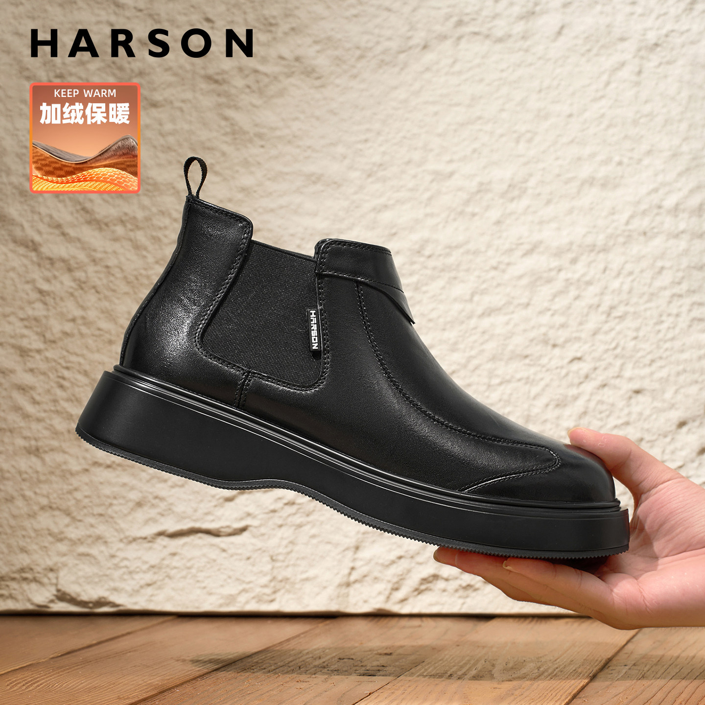 哈森切尔西靴男真皮冬季男鞋加绒保暖羊毛靴子2026新款商务皮鞋男