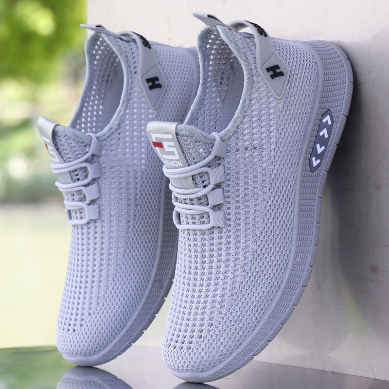 夏季男鞋轻便一脚蹬透气镂空网面懒人鞋男士软底休闲鞋网眼运动鞋