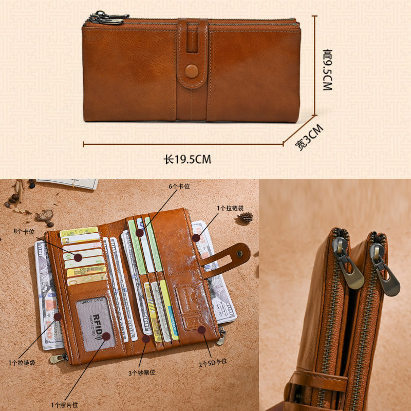 311线报网描述:时尚新款油蜡牛皮耐磨耐用手感柔软多卡位