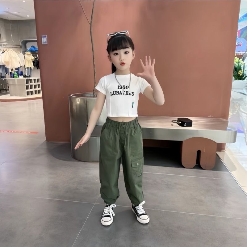 女童套装夏季薄款中大童洋气短袖工装裤两件套儿童网红t恤裤子6