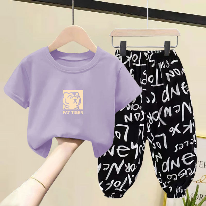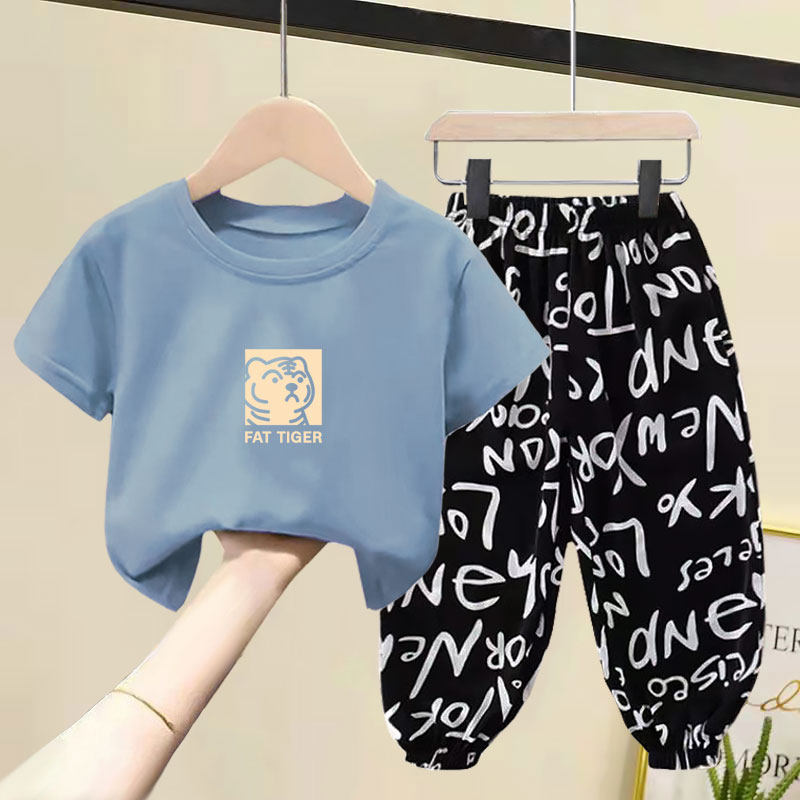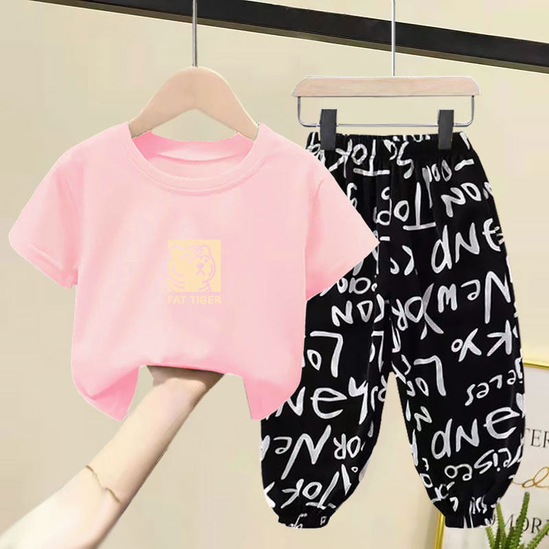 儿童套装2025夏季新款洋气韩版男女童衣服纯棉短袖T恤宝宝两件套