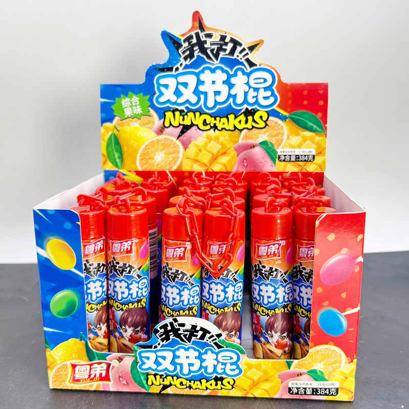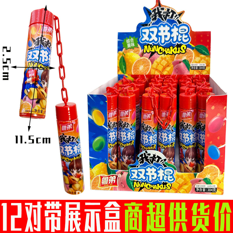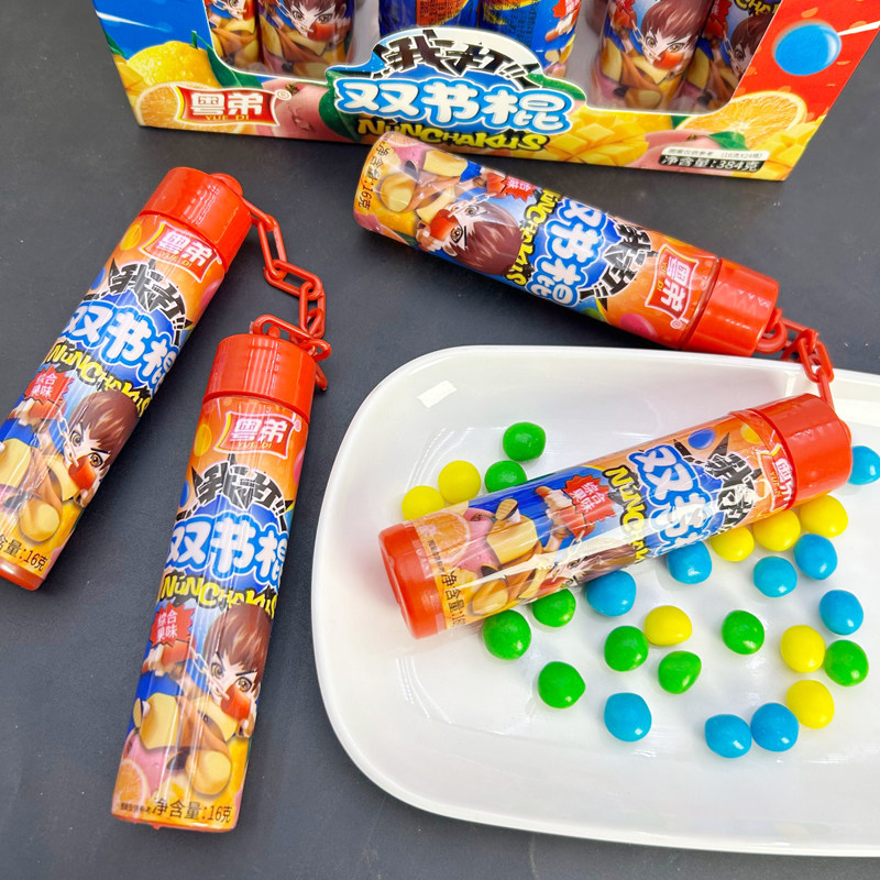 儿童创意装糖果玩具趣味双截节棍造型彩色圆球糖小孩学生零食批发