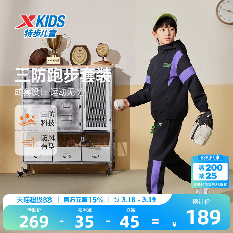 特步童装儿童拼色套装男童2026年新款中大童运动服春季夹克两件套