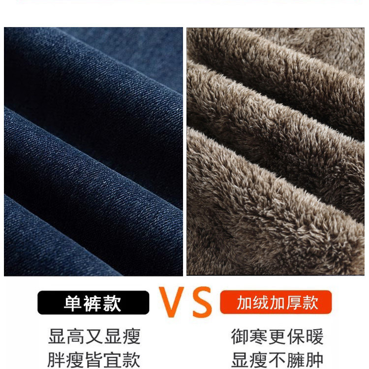 2025新款秋冬季加绒加厚牛仔裤女直筒裤高腰显瘦松紧腰保暖阔腿裤