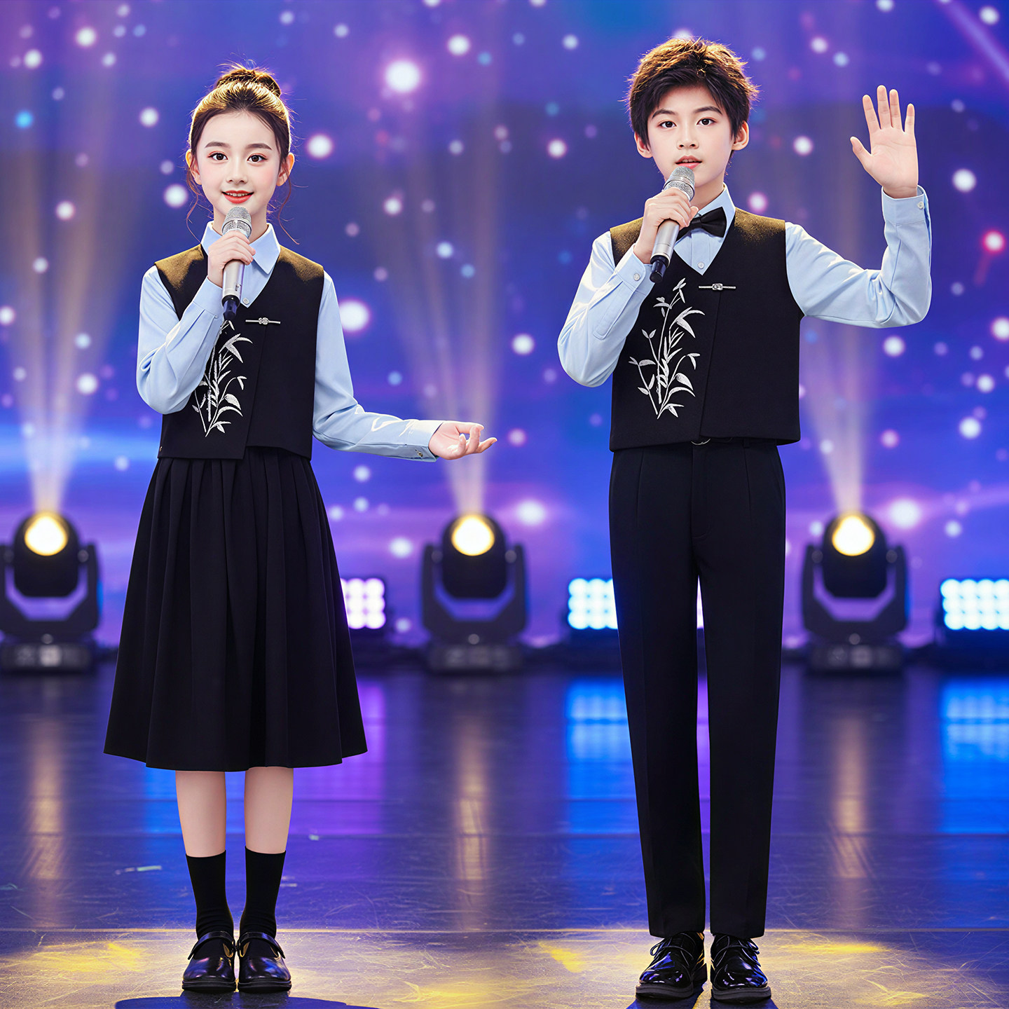 元旦儿童中小学生爱国合唱演出服国风演讲朗诵比赛服装男女童礼服