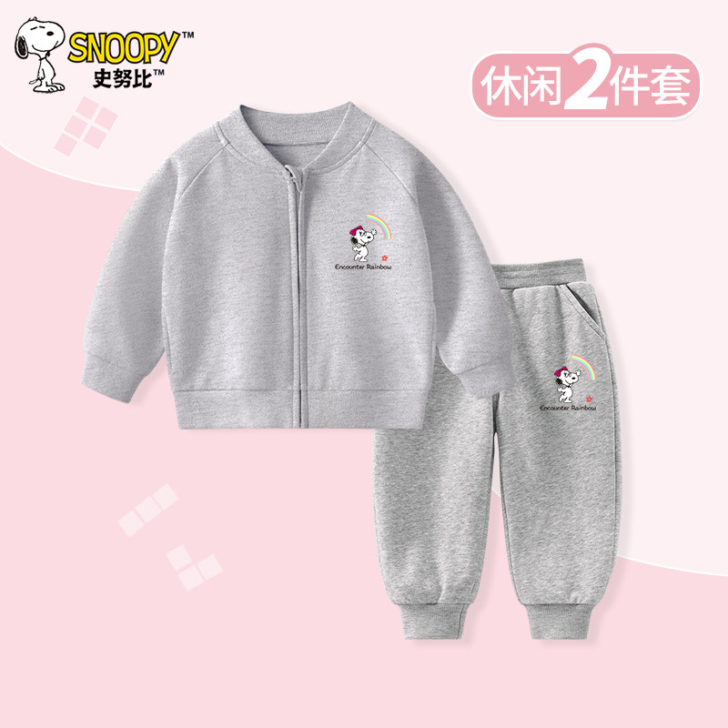 史努比童装女童套装2026新款春秋季裤子儿童外套宝宝春装运动衣服