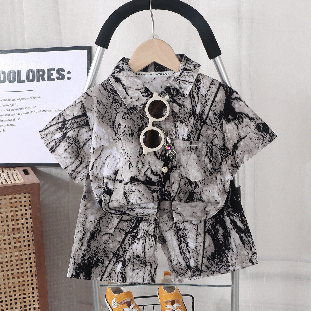 男童短袖T恤夏季休闲套装 痞帅风格儿童衬衫2026新款