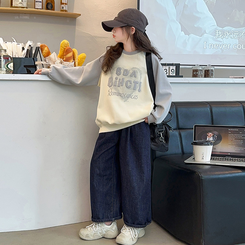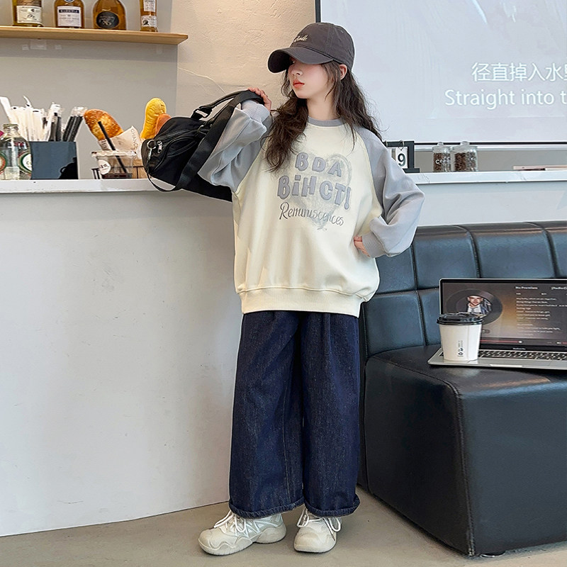 女童春秋长袖T恤爱心2026新款儿童落肩袖卫衣中大童宽松上衣女装