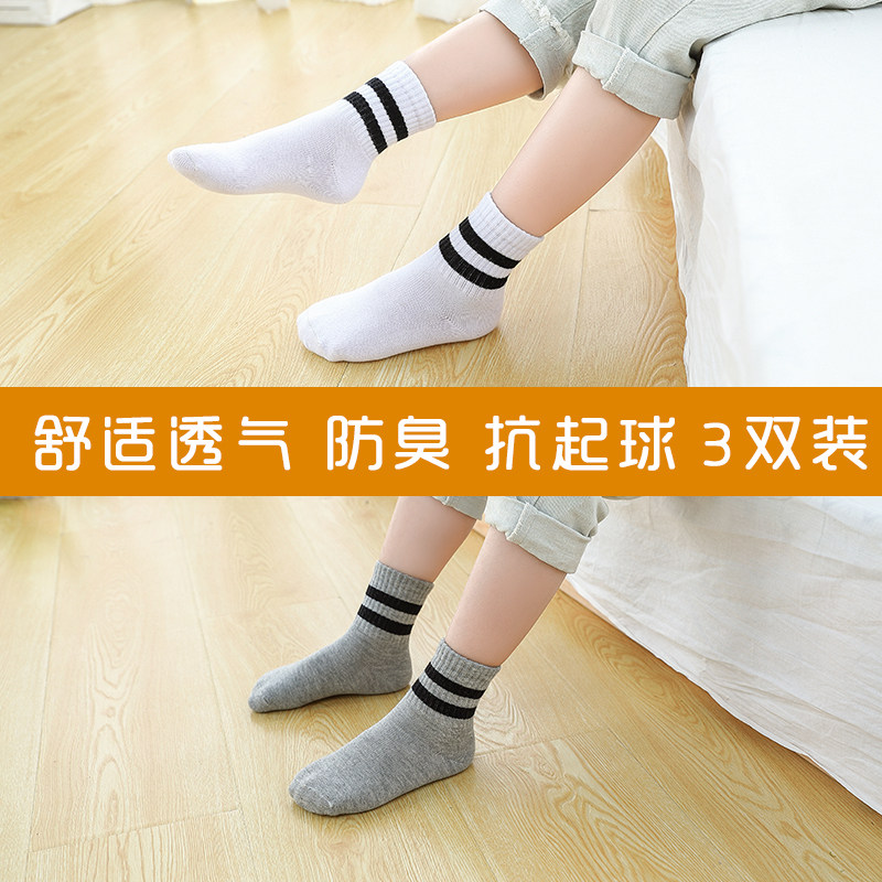 儿童短袜纯棉袜子春秋薄款男童足球袜学生白色袜女童袜校服鞋袜子