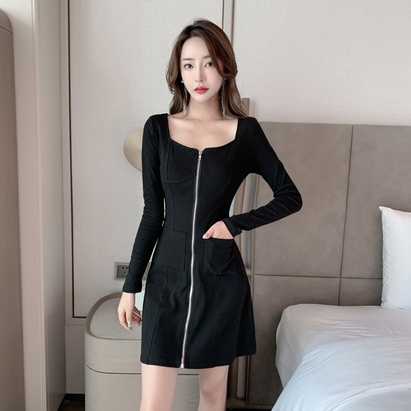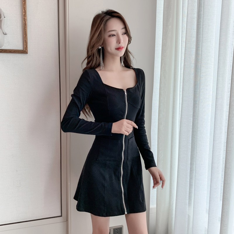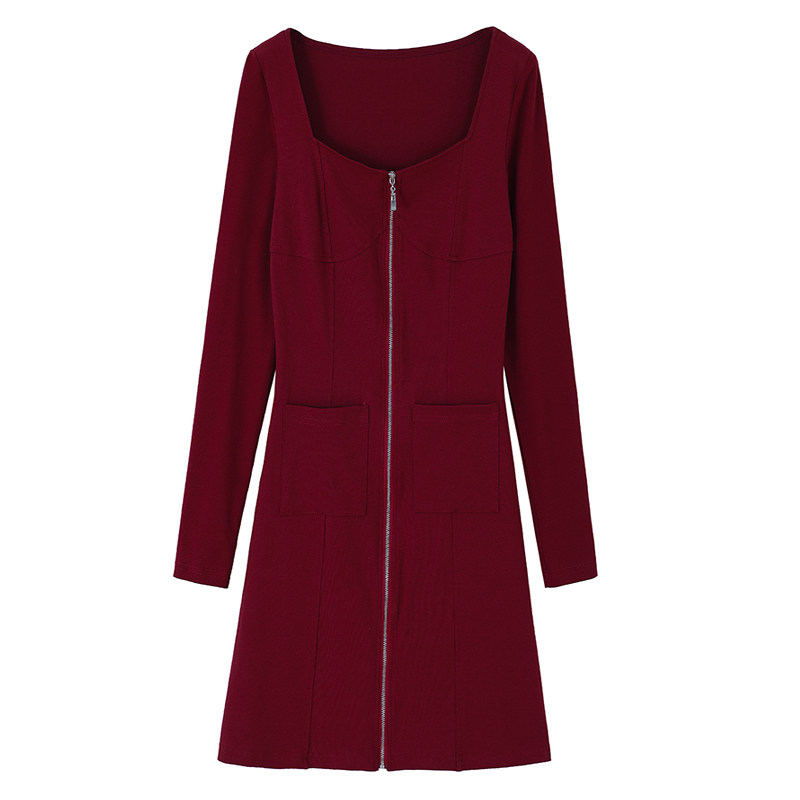 方领连衣裙性感女装2025新款春装小个子低胸修身显瘦长袖A字裙子