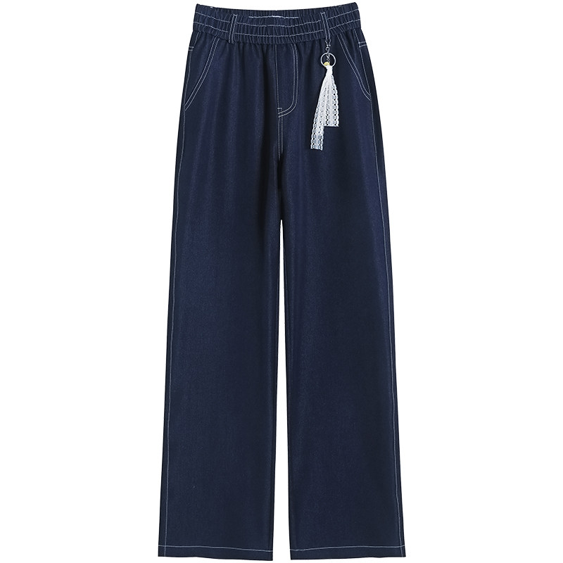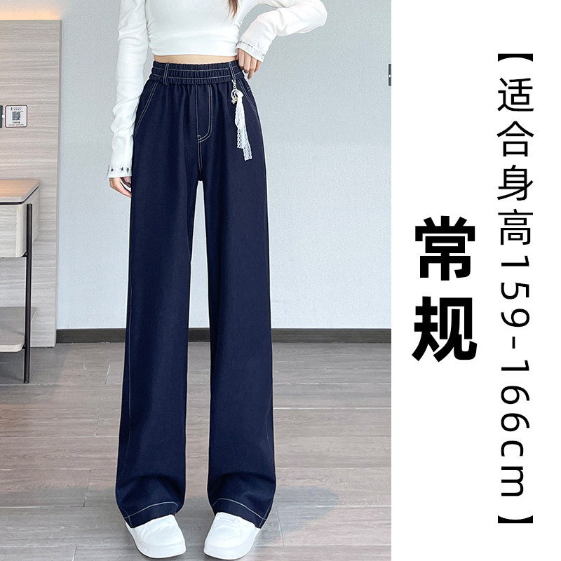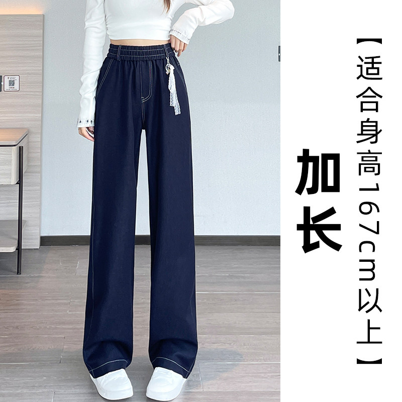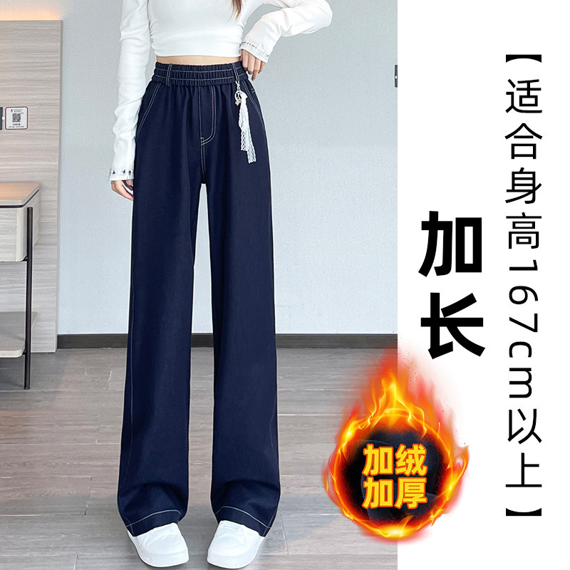 加绒加长松紧腰牛仔阔腿裤女高个子大码2025新款冬季加厚直筒裤子